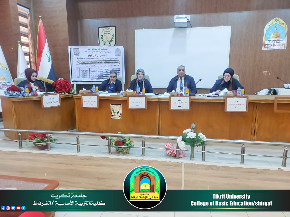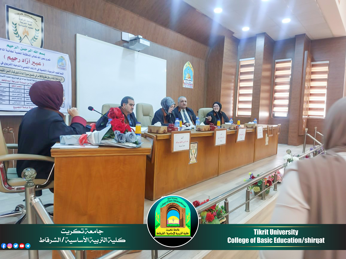 شارك الأستاذ الدكتور (علي عليج خضر) التدريسي على ملاك كليتنا/رئيس قسم العلوم، برئاسة لجنة مناقشة رسالة الماجستير المقامة في رحاب كلية التربية للعلوم الإنسانية/ جامعة كركوك للطالبة عبير ازاد رحيم الموسومة بـ ((إثر برنامج ارشادي وفق نظرية كلاسر في تحسين صورة الذات لدى كبار السن المُقيمين في دور المُسنين)) وذلك يوم الخميس الموافق 2024/10/31، وقررت اللجنة قبول رسالة الطالبة ومنحها شهادة الماجستير و بتقدير جيد جداً، متمنين لها دوام الموفقية والمزيد من العطاء والابداع العلمي المتواصل والمستمر خدمة للمسيرة العلمية.