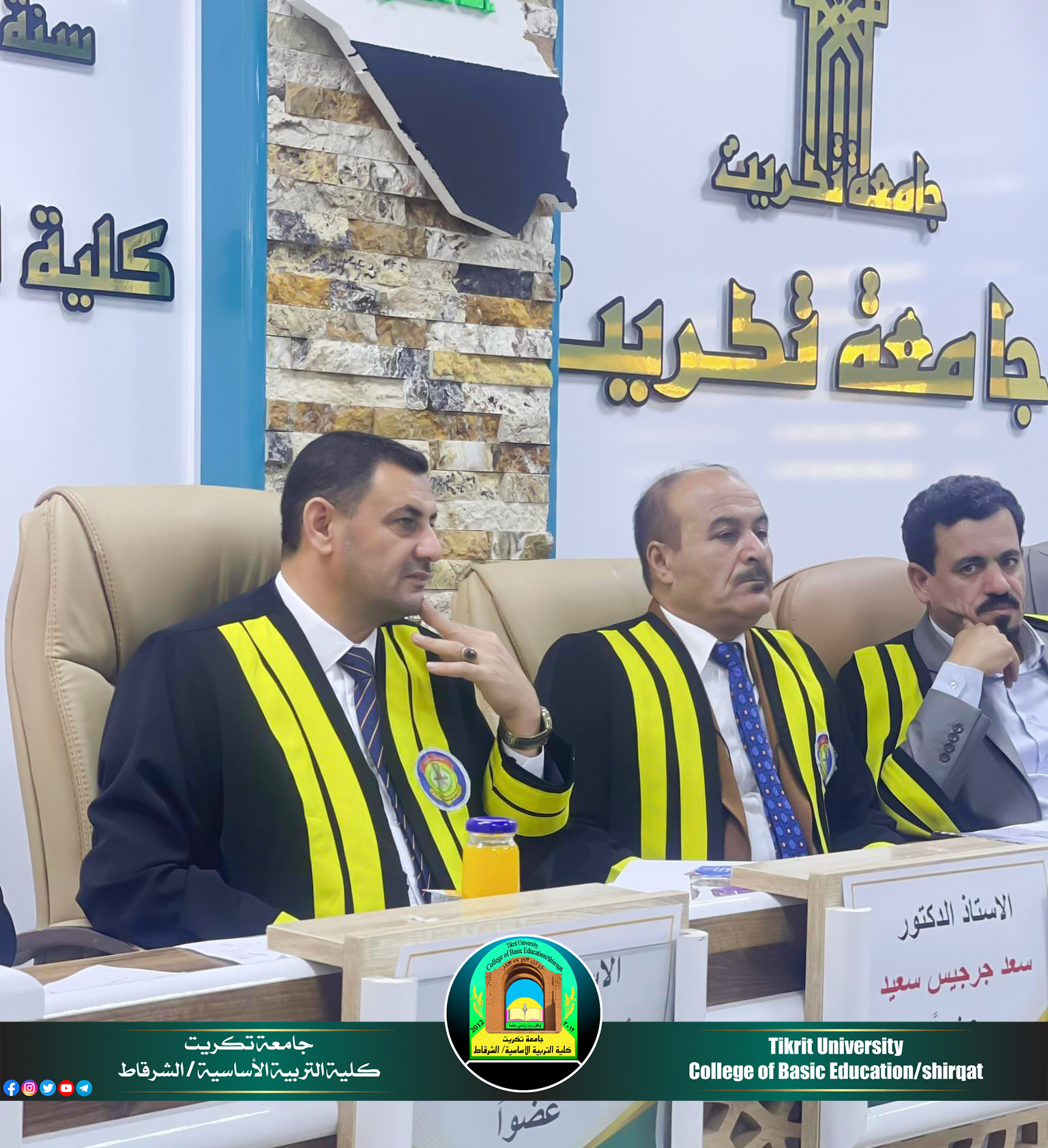 شارك الأستاذ الدكتور سعد جرجيس سعيد معاون العميد للشؤون العلمية في الكلية, بعضوية لجنة مناقشة أطروحة الدكتوراه المقامة في رحاب كلية التربية للعلوم الإنسانية/ جامعة تكريت للطالب نبيل عماد يوسف العياش الموسومة بـ ((شعرية الإيقاع عند أجود مجبل)) يوم الاثنين الموافق 2024/11/11، وقررت اللجنة قبول اطروحة الطالب ومنحه شهادة الدكتوراه في تخصصه الدقيق وبتقدير جيد جداً، متمنين له دوام الموفقية والمزيد من العطاء والابداع العلمي المتواصل والمستمر خدمة للمسيرة التعليمية.