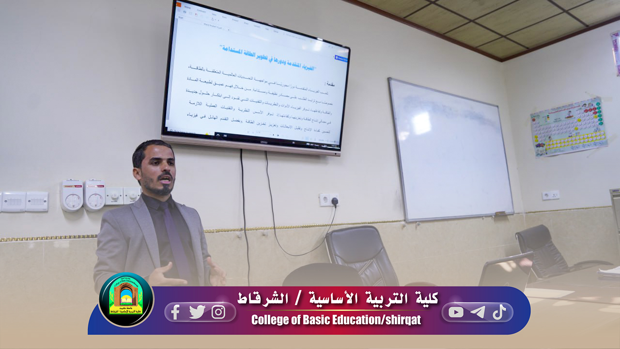 برعاية الأستاذ الدكتور وعد محمود رؤوف رئيس جامعة تكريت وبإشراف الأستاذ الدكتور حامد محمد صالح عميد الكلية، في إطار سعيها لتعزيز الوعي بالقضايا البيئية والطاقة المستدامة أقامت كلية التربية الأساسية / الشرقاط وبالتعاون مع مركز التعليم المستمر ندوة علمية بعنوان (الفيزياء المتقدمة ودورها في تطوير مصادر الطاقة المستدامة) اليوم الثلاثاء الموافق 18/11/2025 ، وقد حاضر في الندوة كل من