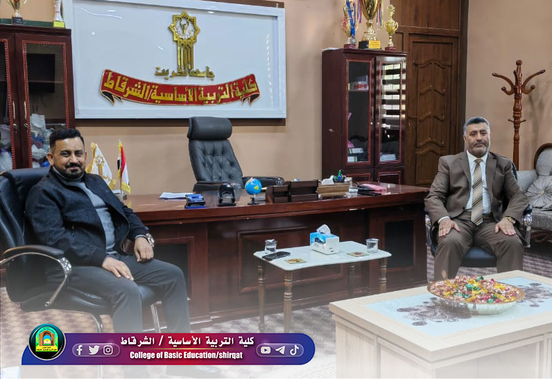 استقبل الأستاذ الدكتور حسين عبد إسماعيل المحترم عميد كلية التربية الأساسية / الشرقاط اليوم الاربعاء الموافق3/12/2025 في مكتبه الاستاذ الدكتور وسام نعمه حسين عميد كلية الإدارة والاقتصاد/ الشرقاط برفقة الأستاذ المساعد الدكتور خالد رحيل شهاب رئيس قسم المحاسبة والمدرس الدكتور حمد فرحان موسى مدير شعبة شؤون الطلبة والتسجيل والمدرس الدكتور صلاح الدين شبل جاسم خليل رئيس قسم إدارة الاعمال وعدد من الموظفين، لتقديم لتهنئة للسيد العميد بمناسبة تسنمه مهام منصبه الجديد، سائلين المولى عز وجل أن ينعم عليه بدوام الموفقية والنجاح في مسيرته العلمية والإدارية الجديدة من جانبه رحب السيد العميد بالضيوف الكرام، معرباً عن شكره وامتنانه لهذه الالتفاتة الطيبة.