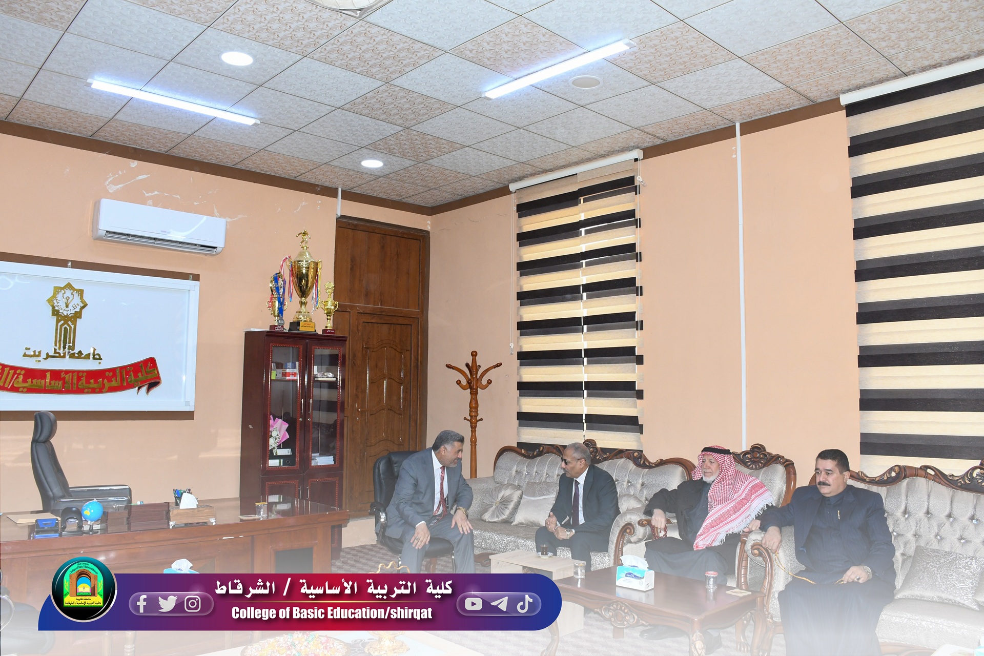 استقبل الأستاذ الدكتور حسين عبد إسماعيل عميد الكلية صباح هذا اليوم الوفود المهنئة بمنصبه الجديد وعلى رأسهم الأستاذ الدكتور خميس خلف حسن عميد كلية هندسة الشرقاط والوفد المرافق له وعدد من الشخصيات الاكاديمية والاجتماعية البارزة، حيث عبرت الوفود عن خالص تهانيها للسيد العميد بمنصبه الجديد، داعيةً المولى عز وجل أن يكلل مساعيه بالتوفيق والنجاح. بدوره رحب السيد العميد بالضيوف الكرام، معرباً عن شكره الجزيل وامتنانه العميق لمشاعرهم النبيلة وتهنئتهم الصادقة له.