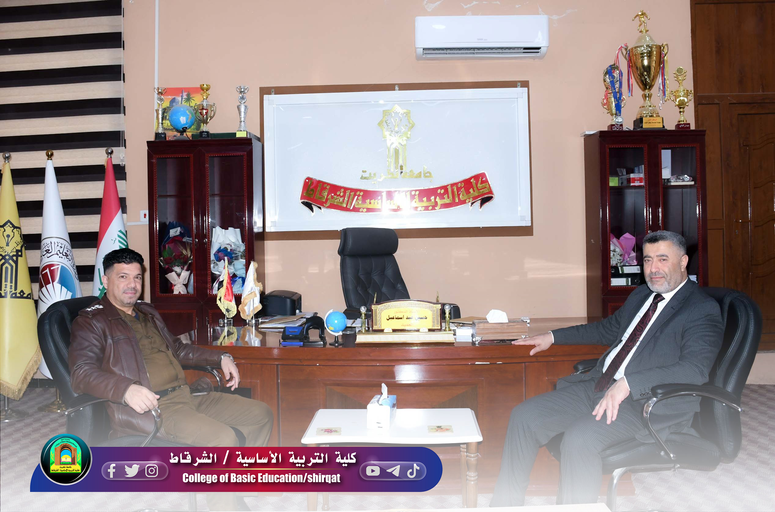استقبل الأستاذ الدكتور حسين عبد إسماعيل المحترم السيد مدير شرطة الشرقاط العقيد فرقد علي دودح اليوم الخميس الموافق 2025/12/11 وجاءت هذه الزيارة لتقديم التهنئة الصادقة والمباركة للأستاذ الدكتور حسين عبد إسماعيل بمناسبة تسنمه مهام منصبه الجديد عميداً للكلية. ورحب السيد عميد الكلية بالوفد الزائر معبراً عن شكره وتقديره بهذه التهنئة، من جانبه قدم السيد مدير الشرطة تهانيه الحارة للعميد الجديد متمنياً له دوام التوفيق والنجاح في قيادة الكلية نحو مزيد من التقدم العلمي وقد جرى خلال اللقاء تبادل الأحاديث الودية ومناقشة سبل تعزيز التعاون المستقبلي بين الجانبين.