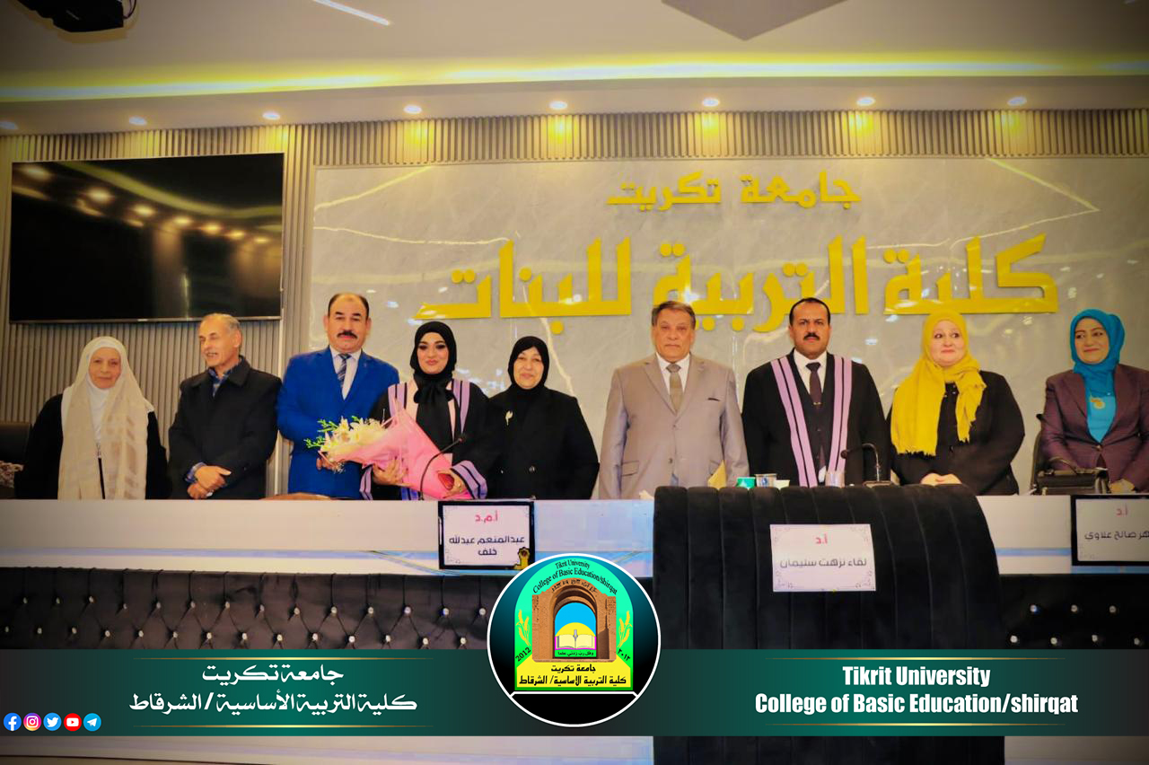 شارك الأستاذ المساعد الدكتور(عبدالمنعم عبدالله خلف) التدريسي على ملاك كليتنا بعضوية لجنة مناقشة رسالة ماجستير في كلية التربية للبنات/ جامعة تكريت للطالبة ((زينب متين عبدالله)) والموسومة بـ ((تحليل الخطاب وأشكال التواصل في رواية الدجال - دراسة سوسيو لسانية)) يوم الاثنين الموافق 2025/1/20، وقررت اللجنة قبول رسالة الطالبة ومنحها شهادة الماجستير في تخصصها الدقيق وبتقدير أمتياز، متمنين لها دوام الموفقية والمزيد من العطاء والابداع العلمي المتواصل والمستمر خدمة للمسيرة التعليمية.
