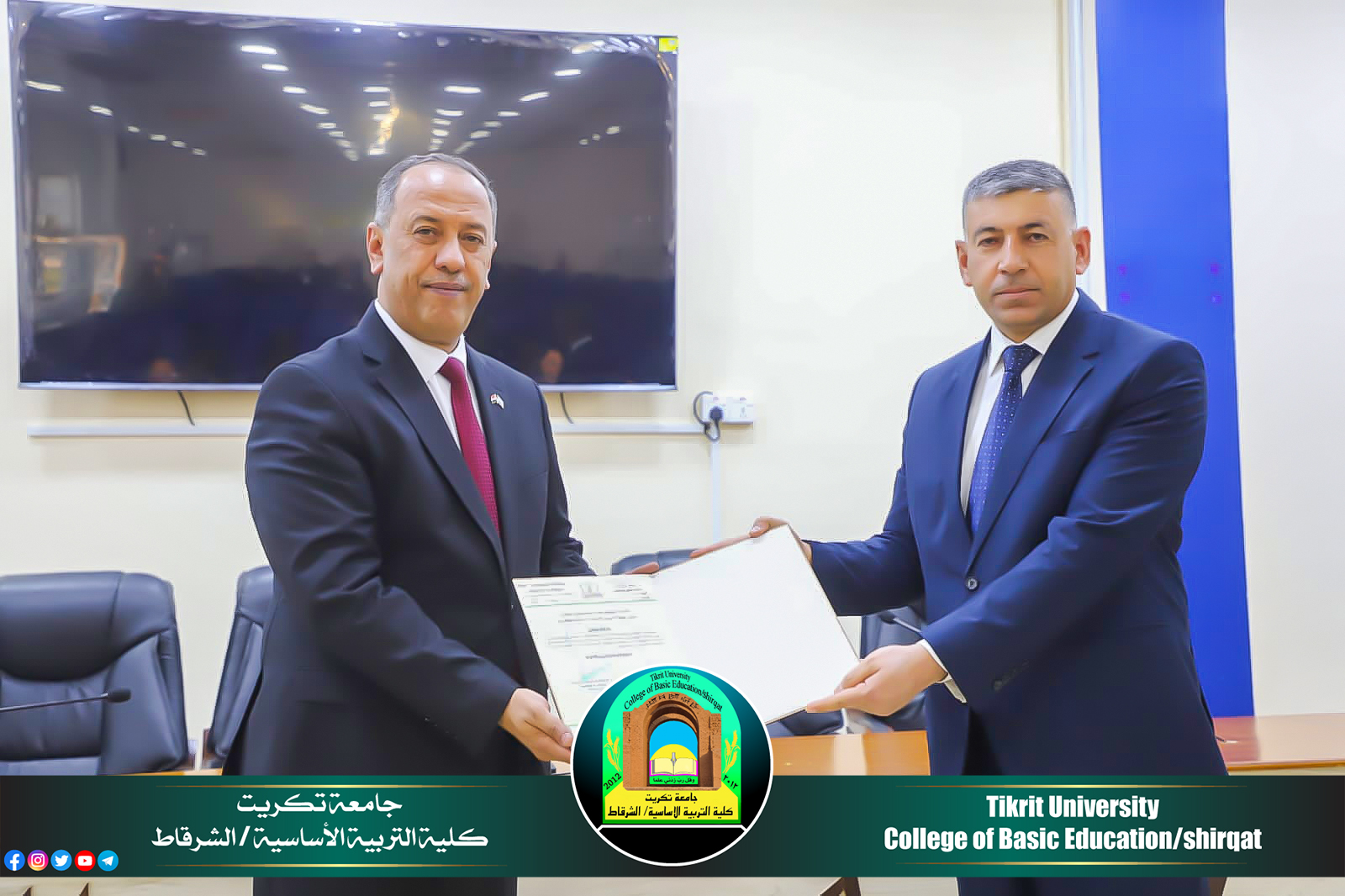 وكرم السيد رئيس جامعة الانبار الاستاذ الدكتور حامد محمد صالح عميد كليتنا بكتاب شكر وتقدير.