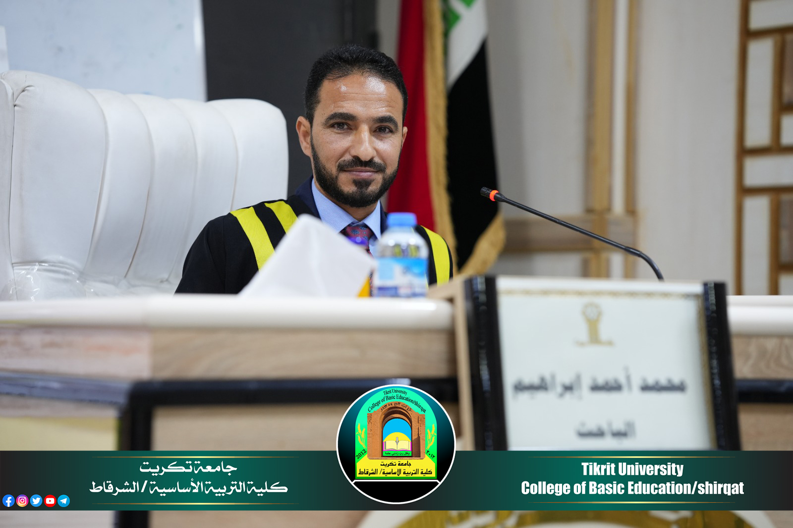 تتقدم اسرة كلية التربية الاساسية/ الشرقاط بأطيب التهاني والتبريكات للمدرس المساعد (محمد احمد ابراهيم) التدريسي على ملاك كليتنا بمناسبة حصوله على شهادة الدكتوراه بعد مناقشة اطروحته الموسومة بـ (نقذ الشذوذ اللغوي في كتاب اعراب القرآن الكريم)، من جامعة تكريت/ كلية التربية للعلوم الإنسانية/ قسم اللغة العربية.. سائلين المولى عز وجل التوفيق له في مسيرته الاكاديمية والعلمية.