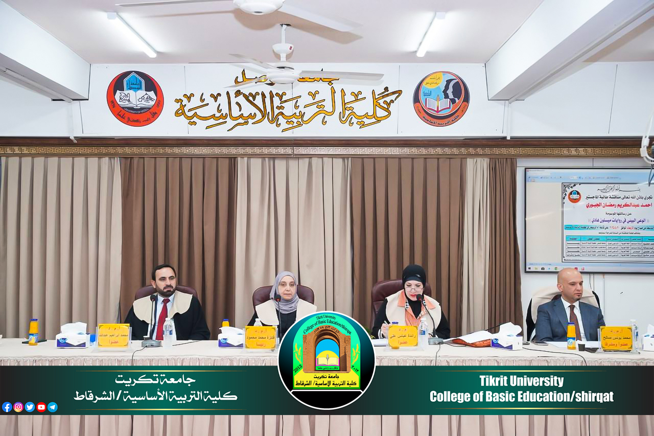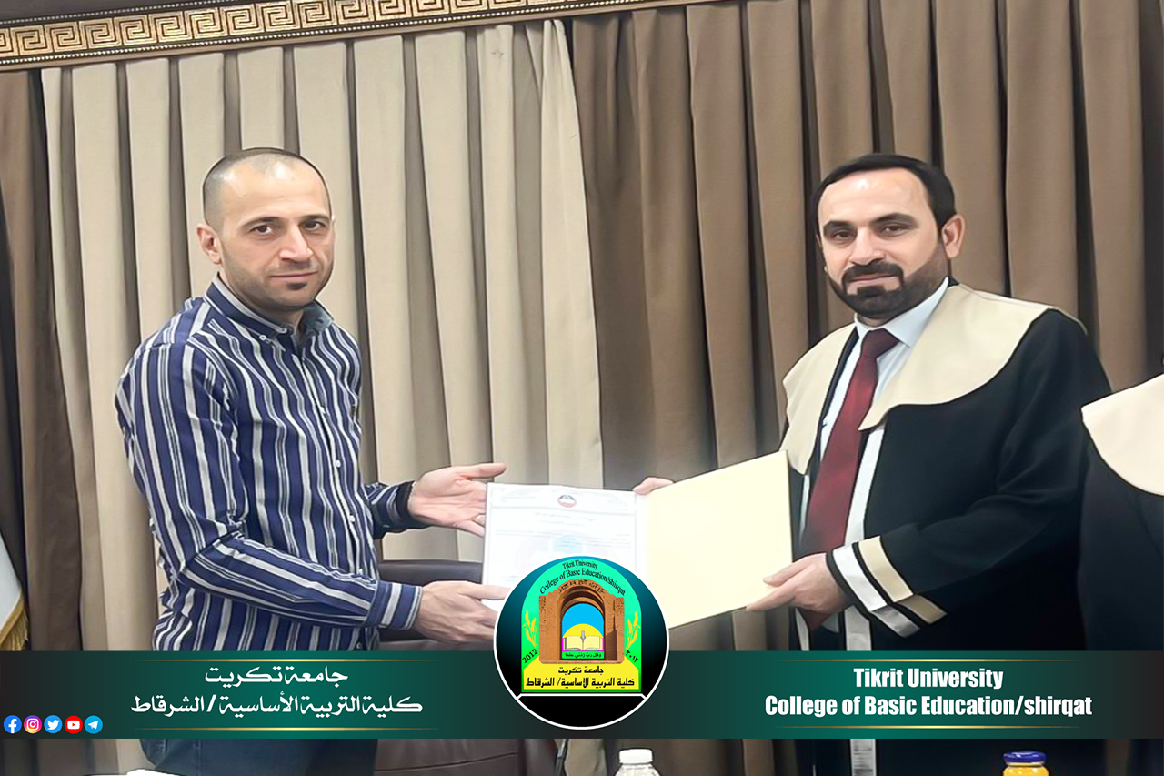 شارك الأستاذ المساعد الدكتور (محمد ابراهيم عبدالله) التدريسي على ملاك كليتنا / قسم اللغة العربية بعضوية لجنة مناقشة رسالة ماجستير في جامعة الموصل/ كلية التربية الاساسية للطالب ((أحمد عبد الكريم رمضان)) والموسومة بـ ((الوعي البيئي في روايات ميسلون هادي)) يوم الاربعاء الموافق 2025/4/30، وقد حضر المناقشة السيد وزير الثقافة الدكتور احمد فكاك البدراني المحترم، وقررت اللجنة قبول رسالة الطالب ومنحه شهادة الماجستير في تخصصه الدقيق، متمنين له دوام الموفقية والمزيد من العطاء والابداع العلمي المتواصل والمستمر خدمة للمسيرة التعليمية.