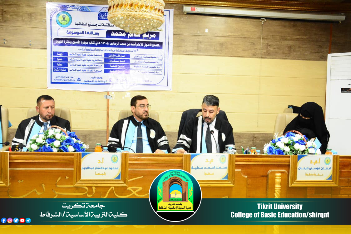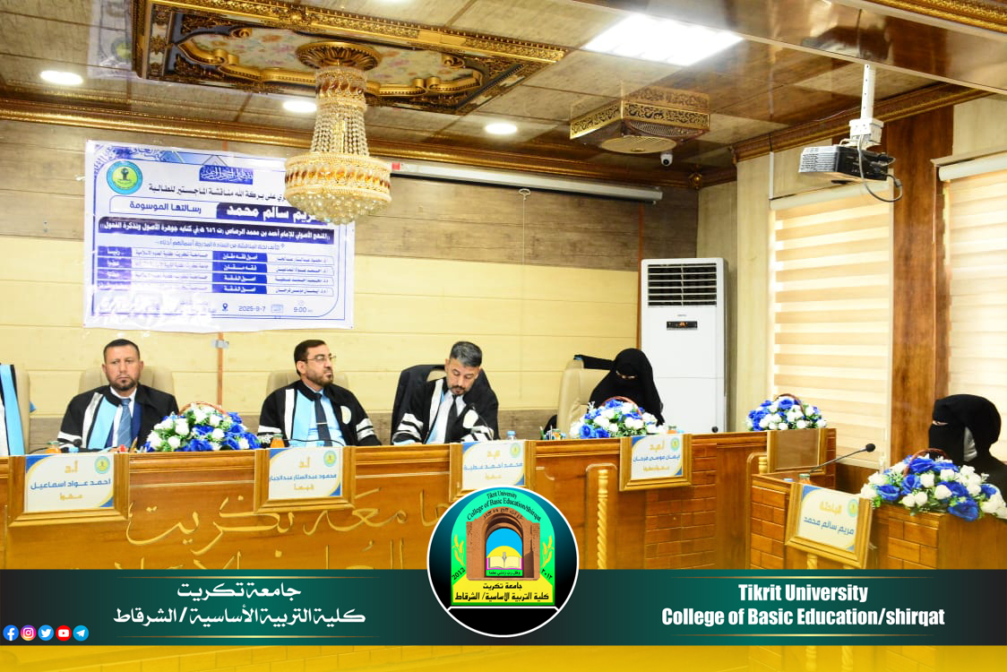 شارك الأستاذ الدكتور أحمد عواد إسماعيل معاون العميد للشؤون الإدارية في لجنة مناقشة رسالة ماجستير للطالبة ( مريم سالم محمد ) في كلية العلوم الإسلامية / قسم الفقه وأصوله الموسومة بـ (( المنهج الأصولي للإمام أحمد بن محمد الرصاص (ت 656 هــ ) في كتابِه جوهرة الأصول وتذكرة الفحول)) يوم الأحد الموافق 7/9/2025 .