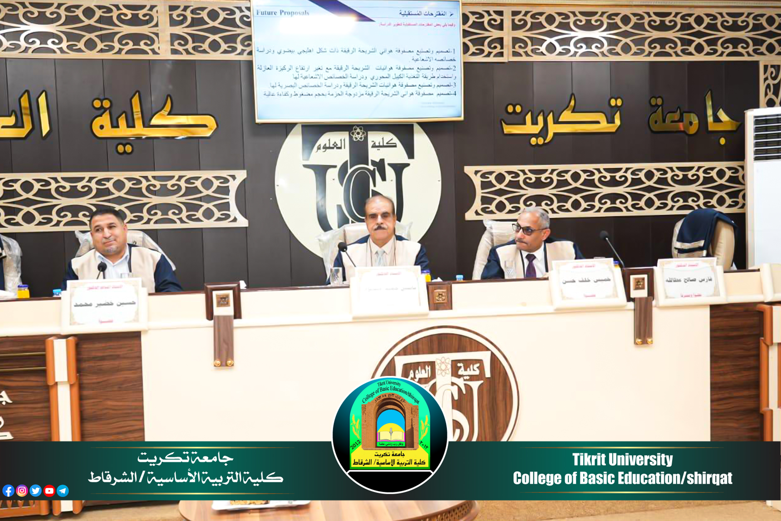 يسرُّ أسرة كلية التربية الأساسية/ الشرقاط أن تتقدم بأحر التهاني والتبريكات للسيدة هبة احمد ابو اليقضان، الموظفة على ملاك كليتنا، بمناسبة حصولها على شهادة الماجستير بعد مناقشة رسالتها الموسومة بـ ((تصميم وتصنيع مصفوفة هوائيات الشريحة الرقيقة مزدوجة الحزمة))، في كلية العلوم/ جامعة تكريت وبتقدير أمتياز.