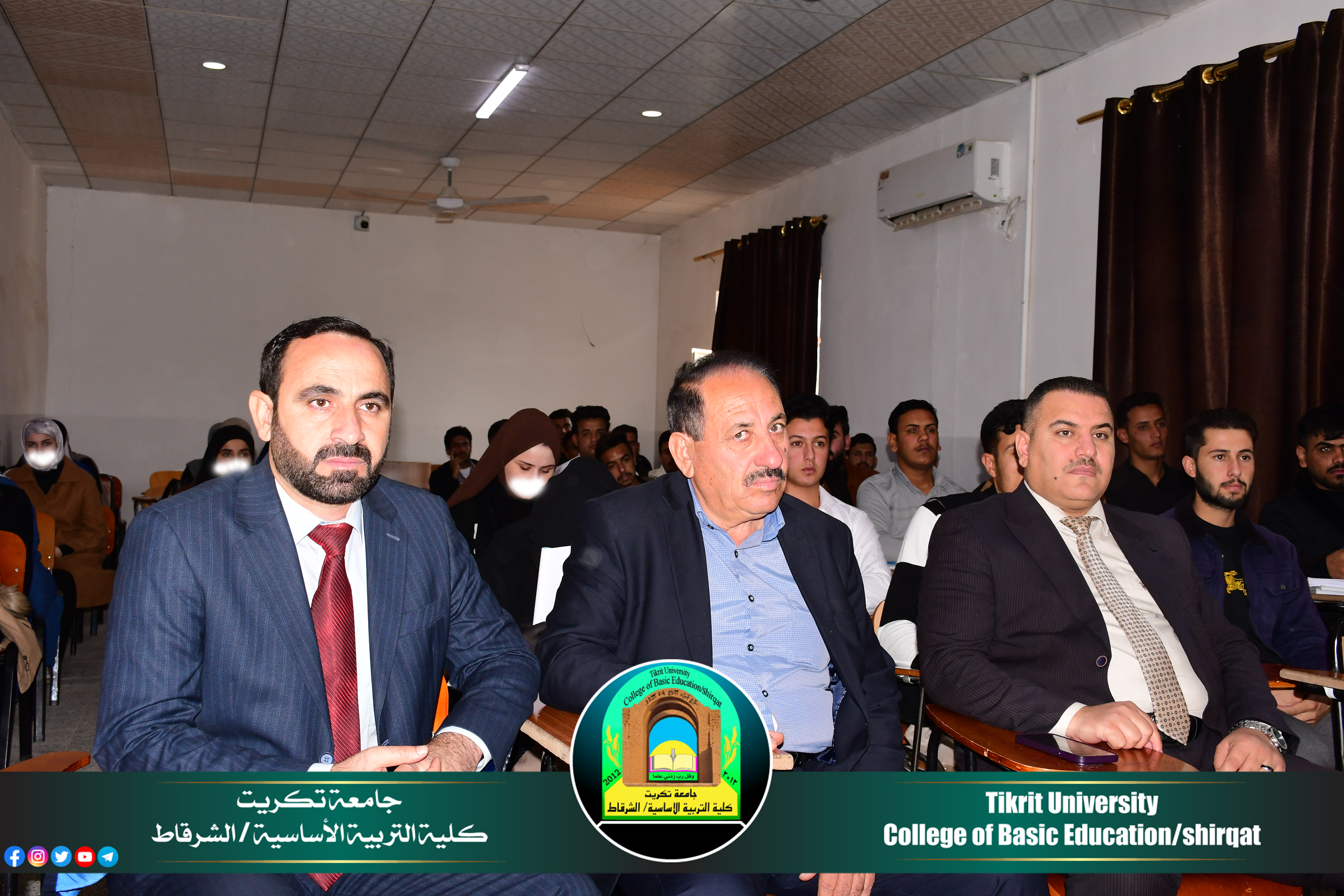 اقامت كلية التربية الاساسية/ الشرقاط بالتعاون مع مركز التعليم المستمر بجامعة تكريت ندوة علمية بعنوان (المساجلات في شعر عصر صدر الاسلام ودورها في تأسيس فن النقائض) يوم الثلاثاء الموافق 2024/11/12