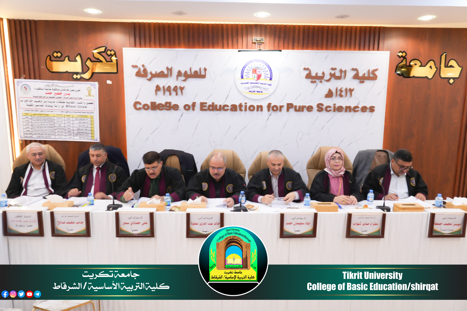 شارك الأستاذ المساعد الدكتور (حامد محمد صالح) عميد كليتنا  بعضوية لجنة مناقشة اطروحة دكتوراه في كلية التربية للعلوم الصرفة/ بجامعة تكريت للطالبة (بدور خضير حمد)  الموسومة ((تحضير واختبار انتقائية مشتقات جديدة من اوكسيد الكرافين لـ wheat straw في ازالة ايونات العناصر الثقيلة)) يوم الخميس الموافق 2024/10/17 ، وقررت اللجنة قبول اطروحة الطالبة ومنحها شهادة الدكتوراه ، متمنين لها دوام الموفقية والمزيد من العطاء والابداع العلمي المتواصل والمستمر خدمة للمسيرة التعليمية.