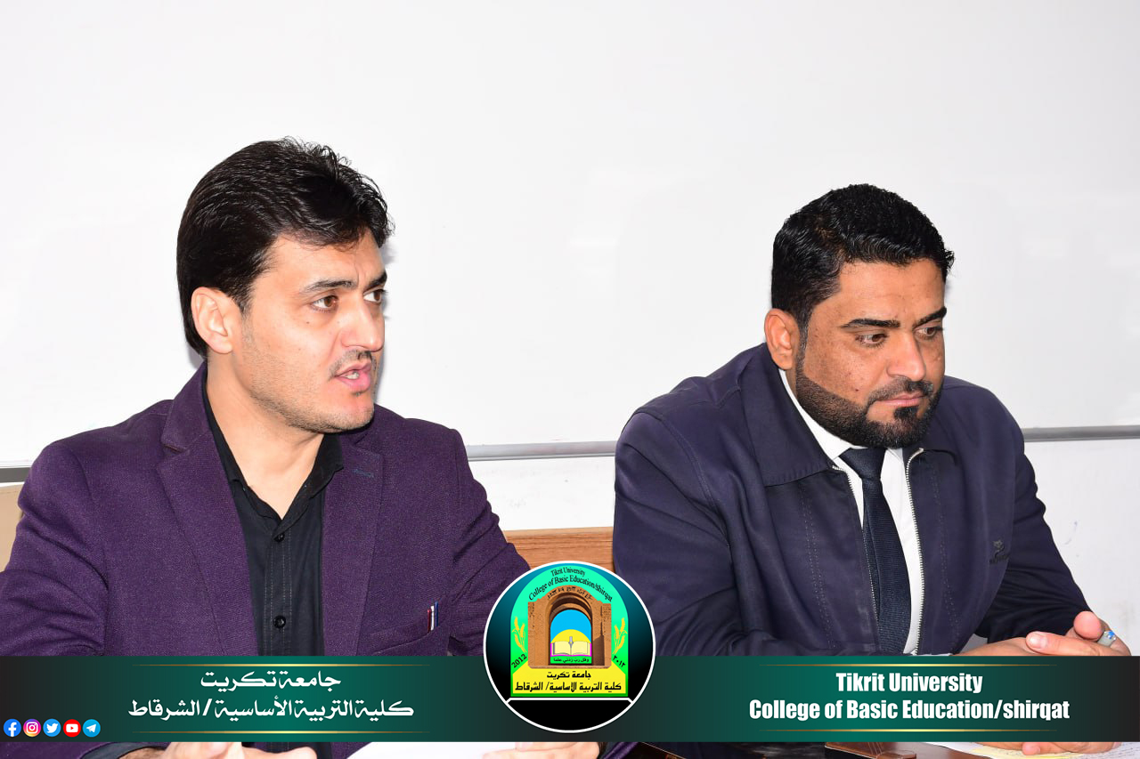 برعاية السيد رئيس جامعة تكريت الاستاذ الدكتور وعد محمود رؤوف المحترم وبإشراف كل من الاستاذ المساعد الدكتور حامد محمد صالح عميد كلية التربية الاساسية/ الشرقاط المحترم والاستاذ المساعد الدكتور سياف عبد حسين مدير مركز التعليم المستمر في جامعة تكريت المحترم, يقيم مركز التعليم المستمر بالتعاون مع كلية التربية الاساسية/ الشرقاط دورة بعنوان (الأسس العلمية في نقد المرويات حديثيا وتاريخيا) ليوم الاحد والاثنين الموافقين 8-2024/12/9 وتمت مناقشة محاور الدورة من قبل كلُ من المدرس الدكتور غسان محمد حسن والمدرس الدكتور سمية جاسم محمد و المدرس المساعد احمد صالح مريس التدريسيين على ملاك كليتنا.