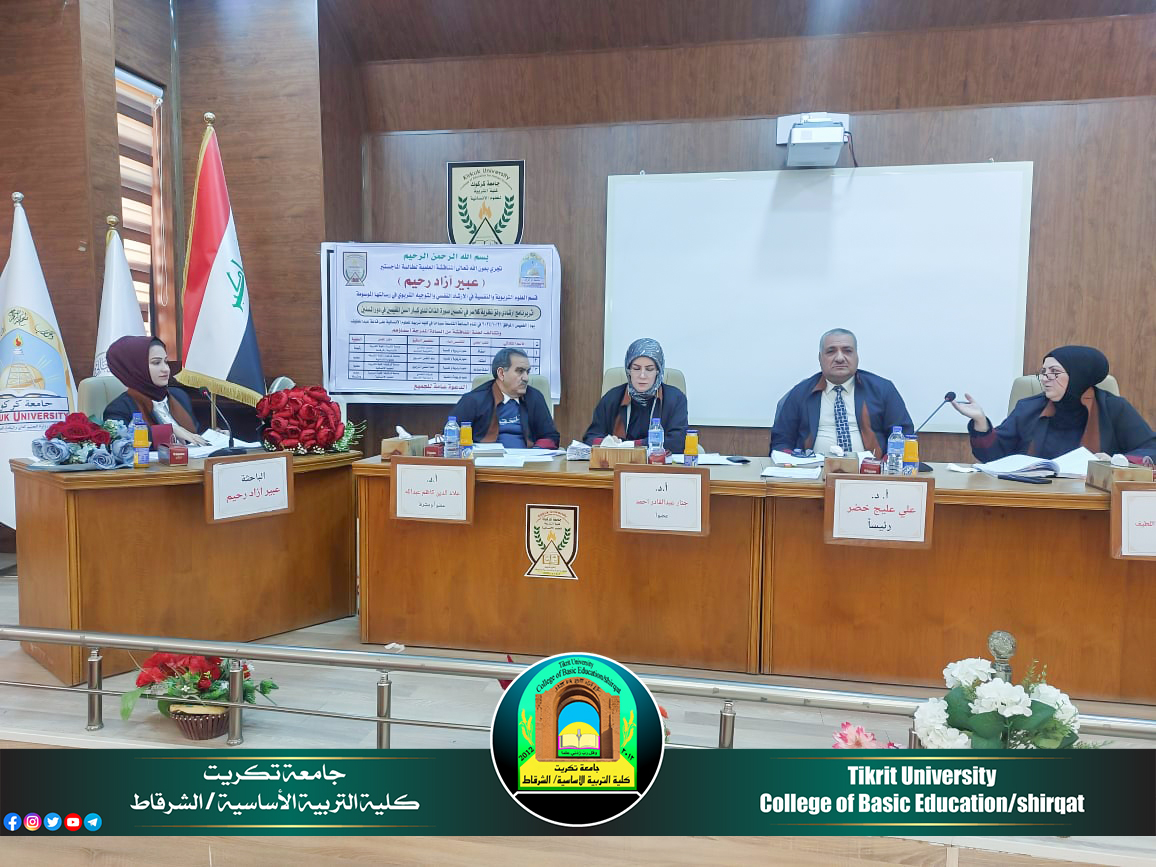 شارك الأستاذ الدكتور (علي عليج خضر) التدريسي على ملاك كليتنا/رئيس قسم العلوم، برئاسة لجنة مناقشة رسالة الماجستير المقامة في رحاب كلية التربية للعلوم الإنسانية/ جامعة كركوك للطالبة عبير ازاد رحيم الموسومة بـ ((إثر برنامج ارشادي وفق نظرية كلاسر في تحسين صورة الذات لدى كبار السن المُقيمين في دور المُسنين)) وذلك يوم الخميس الموافق 2024/10/31، وقررت اللجنة قبول رسالة الطالبة ومنحها شهادة الماجستير و بتقدير جيد جداً، متمنين لها دوام الموفقية والمزيد من العطاء والابداع العلمي المتواصل والمستمر خدمة للمسيرة العلمية.