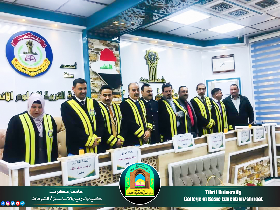 شارك الأستاذ الدكتور سعد جرجيس سعيد معاون العميد للشؤون العلمية في الكلية, بعضوية لجنة مناقشة أطروحة الدكتوراه المقامة في رحاب كلية التربية للعلوم الإنسانية/ جامعة تكريت للطالب نبيل عماد يوسف العياش الموسومة بـ ((شعرية الإيقاع عند أجود مجبل)) يوم الاثنين الموافق 2024/11/11، وقررت اللجنة قبول اطروحة الطالب ومنحه شهادة الدكتوراه في تخصصه الدقيق وبتقدير جيد جداً، متمنين له دوام الموفقية والمزيد من العطاء والابداع العلمي المتواصل والمستمر خدمة للمسيرة التعليمية.