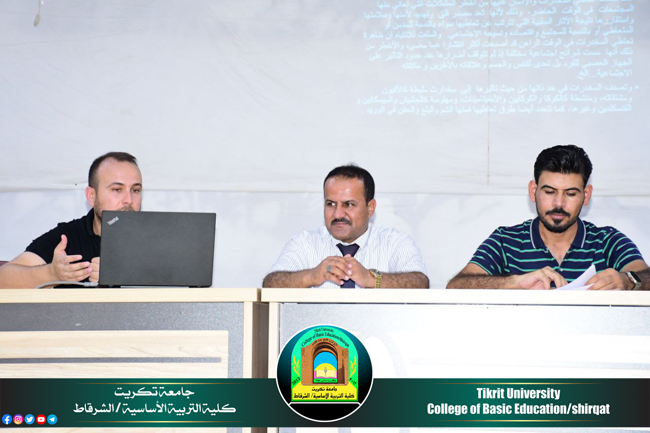اقامت كليتنا بالتعاون مع مركز التعليم المستمر في جامعتنا ورشة عمل بعنوان (دور المؤسسات العلمية في الحد من ظاهرة المخدرات في المجتمع) وذلك يوم الاحد الموافق 2024/8/11 ، قام بالقاء الورشة كل من الاستاذ المساعد الدكتور عبدالمنعم عبدالله خلف والمدرس المساعد احمد علي حسن والمدرس المساعد عبدالله محمود عجيل