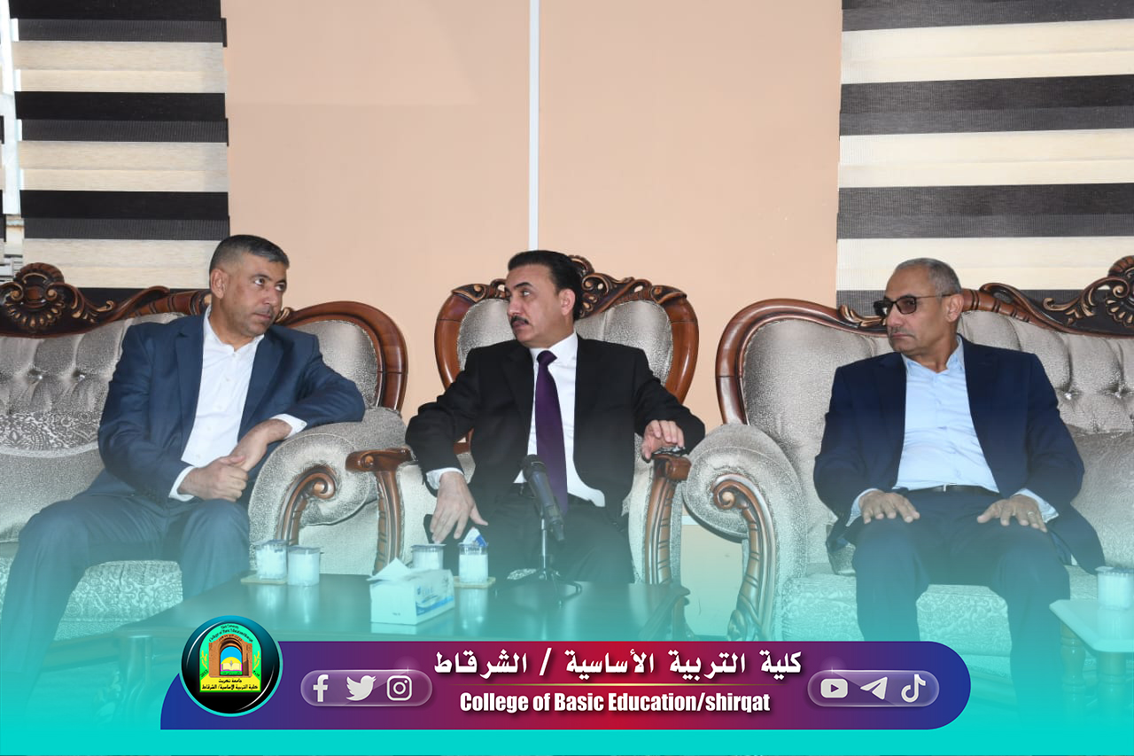 استقبل الأستاذ الدكتور حامد محمد صالح عميد الكلية في مكتبه اليوم الخميس الموافق 23/10/2025 معالي وزير التربية الدكتور إبراهيم نامس ياسين ، وبحضور الأستاذ الدكتور سعد جرجيس سعيد معاون العميد للشؤون العلمية وعمداء كليتي هندسة وعلوم الأغذية في الشرقاط، وتأتي هذه الزيارة للإطمئنان على صحة السيد عميد الكلية متمنياً له الشفاء العاجل ، ودار خلال هذا اللقاء مناقشة تعزيز سبل التعاون المشترك بين المؤسسات الحكومية بما يخدم العملية التعليمية، وفي نهاية الزيارة قدم معالي وزير التربية شكره وتقديره لعمادة الكلية على حفاوة الاستقبال وكرم الضيافة متمنياً لهم المزيد من التقدم والازدهار.