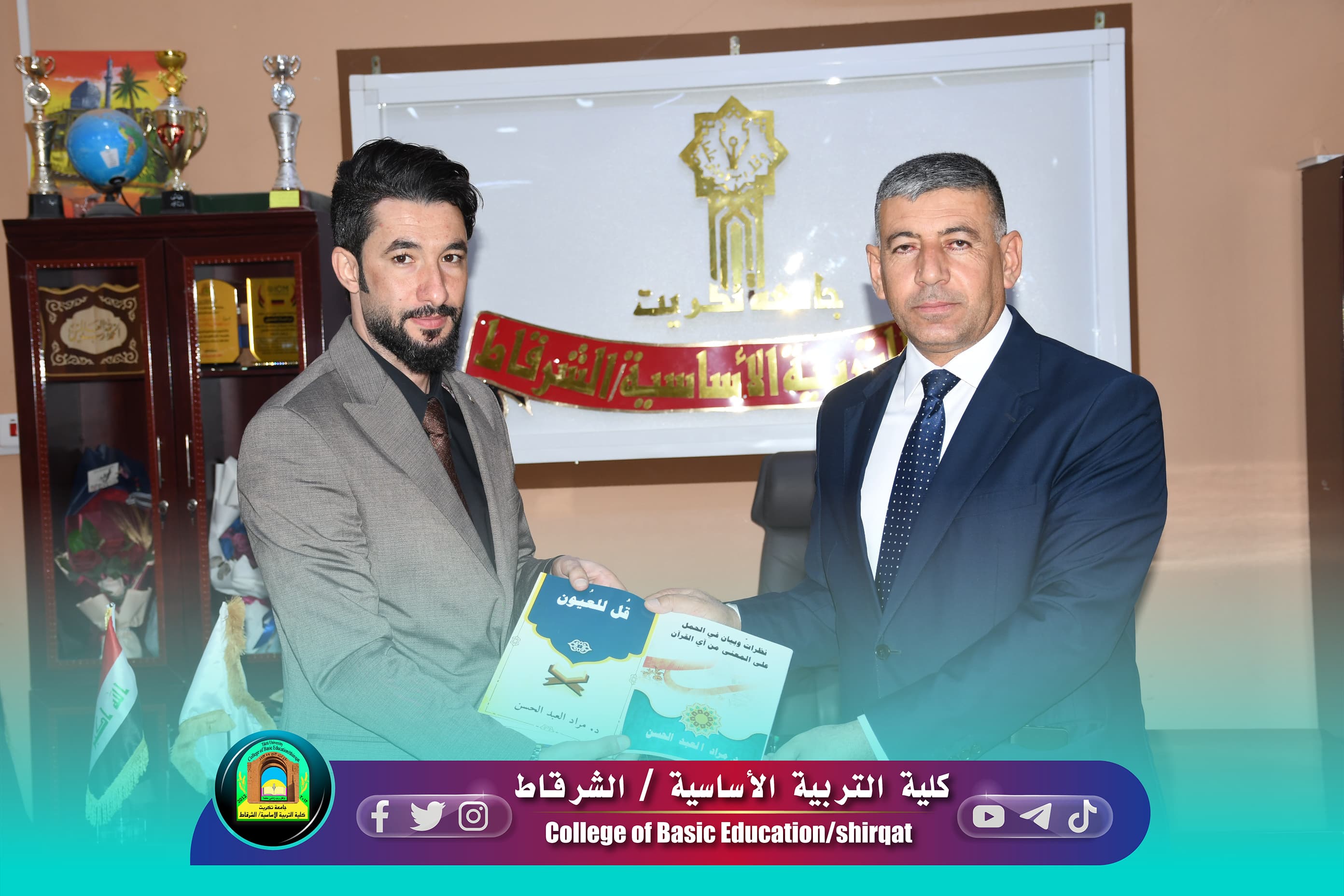 ثمن الأستاذ الدكتور حامد محمد صالح المحترم عميد الكلية جهود التدريسي في قسم اللغة العربية الأستاذ المساعد الدكتور مراد عبد حسين بعد أن أهدى نسخًا من كتابين علميين من تأليفه إلى مكتبة الكلية، أحدهما بعنوان ( نظراتٌ وبيان في الحمل على المعنى من آيِ القرآن)، وهو كتاب ينظر في بلاغة التعبير القرآني ودقة انتقاء الألفاظ، ويكشف عن سر استعمال الجمل والألفاظ التي يُراد بها تعدد المعاني . وقد كشف هذا الكتاب عن أسلوب فني بليغ ، وهو أن يجمع بتعبير واحد معاني متعددة، والآخر بعنوان (قُل للعيون) وهو كتاب يكشف عن جمال ملاحظ العيون ، وعن دور جارحة العين في تشكيل المعاني ، وأناقة العين في رسم المشاهد . وهذان الكتابان صدرا عن دار سومر في قضاء الشرقاط، في خطوة تعكس حرصه على إثراء مكتبة الكلية وخدمة المسيرة الأكاديمية، وقد عبَّر عميد الكلية عن تقديره العميق للجهود البحثية والعلمية للتدريسي، مؤكدًا أن هذا الإنجاز يمثل إضافة نوعية لمكتبة الكلية، ويسهم في توفير مصادر معرفية قيمة للطلاب والباحثين.