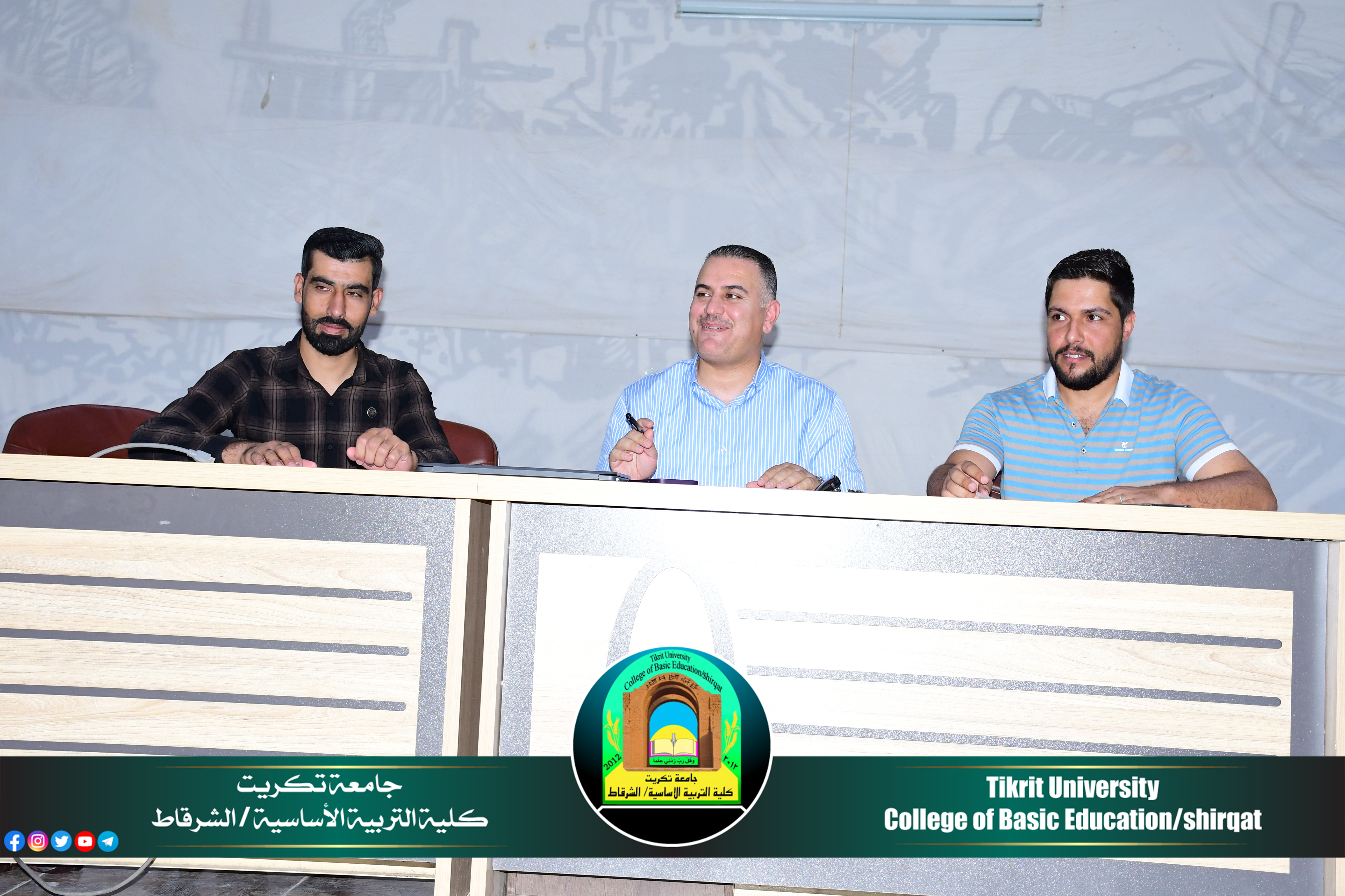 اقامت كليتنا بالتعاون مع مركز التعليم المستمر في جامعتنا ندوة علمية بعنوان (تقييم خريجي كلية التربية الاساسية/ الشرقاط /قسم الرياضيات المعينين على ملاك وزارة التربية) وذلك يوم الثلاثاء الموافق 2024/8/13 وتمت مناقشة الندوة من قبل المدرس الدكتور اياد حمد خلف رئيس قسم الرياضيات والاستاذ المساعد لؤي موسى راوي مقرر القسم والمدرس المساعد احمد طه احمد والمدرس المساعد علاء فرحان احمد