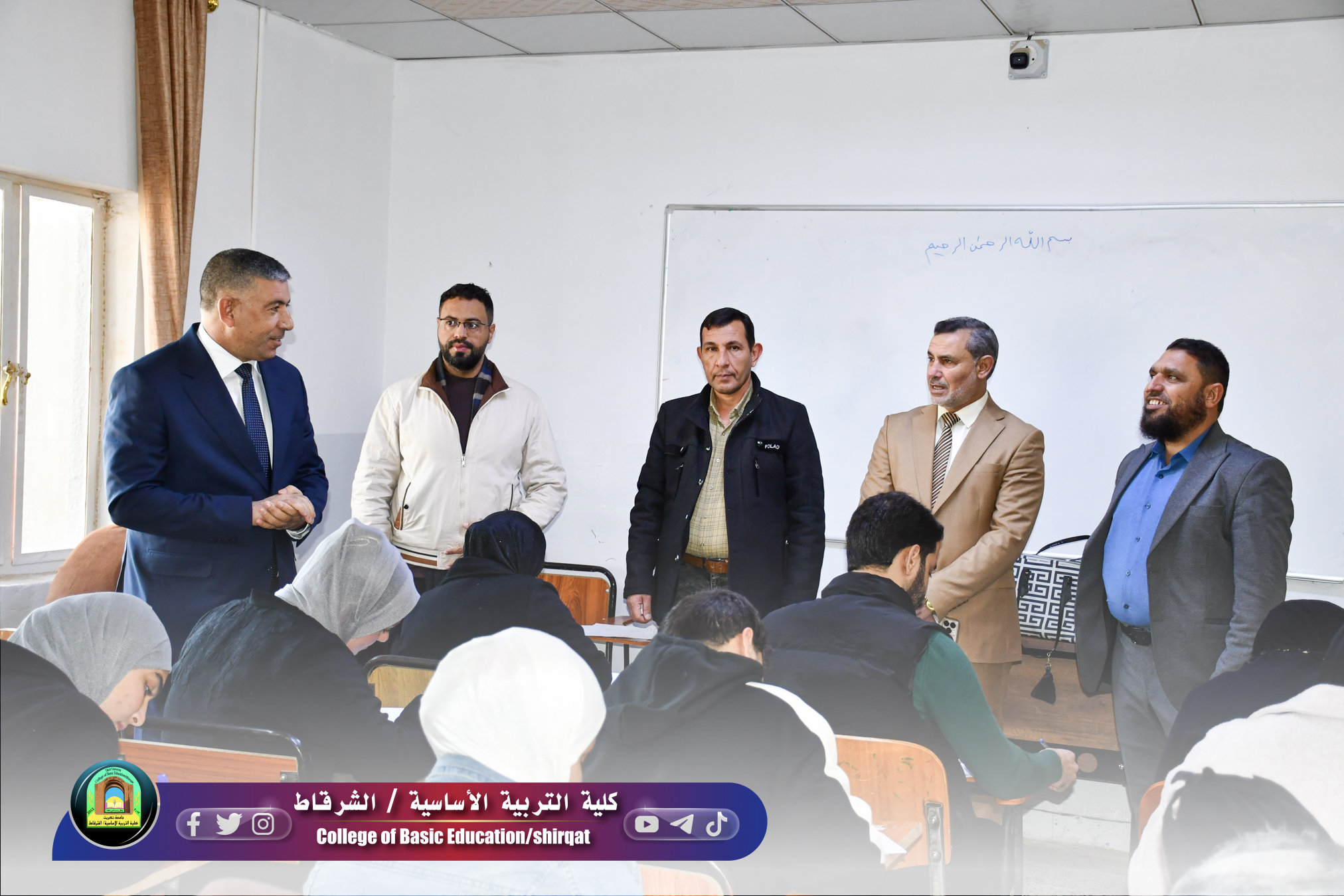 استهلت الزيارة بجولة تفقدية في الأقسام العلمية، كما شملت الجولة زيارة القاعات الامتحانية لمتابعة سير الامتحانات النهائية للفصل الدراسي الأول 2025-2026، حيث استفسر من الطلبة عن طبيعة الأسئلة ومدى توفر المستلزمات الضرورية لراحة الطالب، مؤكداً على ضرورة الالتزام بالتعليمات الوزارية والجامعية النافذة. وخلال جولته في القاعات، أثنى السيد مساعد رئيس الجامعة بشكل خاص على الدور المحوري الذي تؤديه عمادة الكلية واللجان الامتحانية في تنظيم وإدارة العملية الامتحانية بدقة وعناية، مشيداً بالانضباط العالي والالتزام بالتعليمات. كما قدم شكره وتقديره للسادة المراقبين لتفانيهم في توفير أجواء هادئة ومناسبة تضمن للطلبة أداء امتحاناتهم بيسر وسهولة، مؤكداً أن هذا التكامل في العمل بين الهيئات التدريسية واللجان التنظيمية هو الركيزة الأساسية لنجاح الرصانة العلمية في الجامعة.