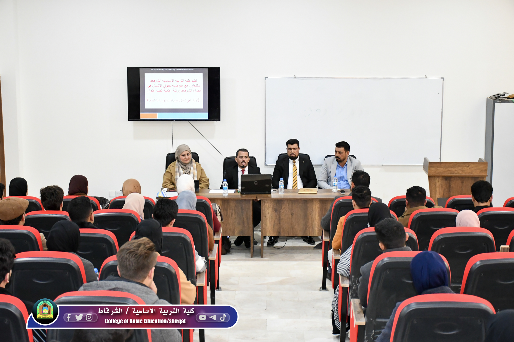 برعاية الأستاذ الدكتور وعد محمود رؤوف رئيس جامعة تكريت وبإشراف الأستاذ الدكتور حسين عبد إسماعيل عميد الكلية أقامت وحدة شؤون المرأة في كلية التربية الأساسية / الشرقاط وبالتعاون مع مفوضية حقوق الانسان في قضاء الشرقاط ومركز التعليم المستمر ندوة علمية بعنوان ((الاطار القيمي للعدالة وحقوق الانسان فى مواجهة التطرف)) اليوم الاحد الموافق 8/2/2026 وقد حاضر في الندوة كل من.