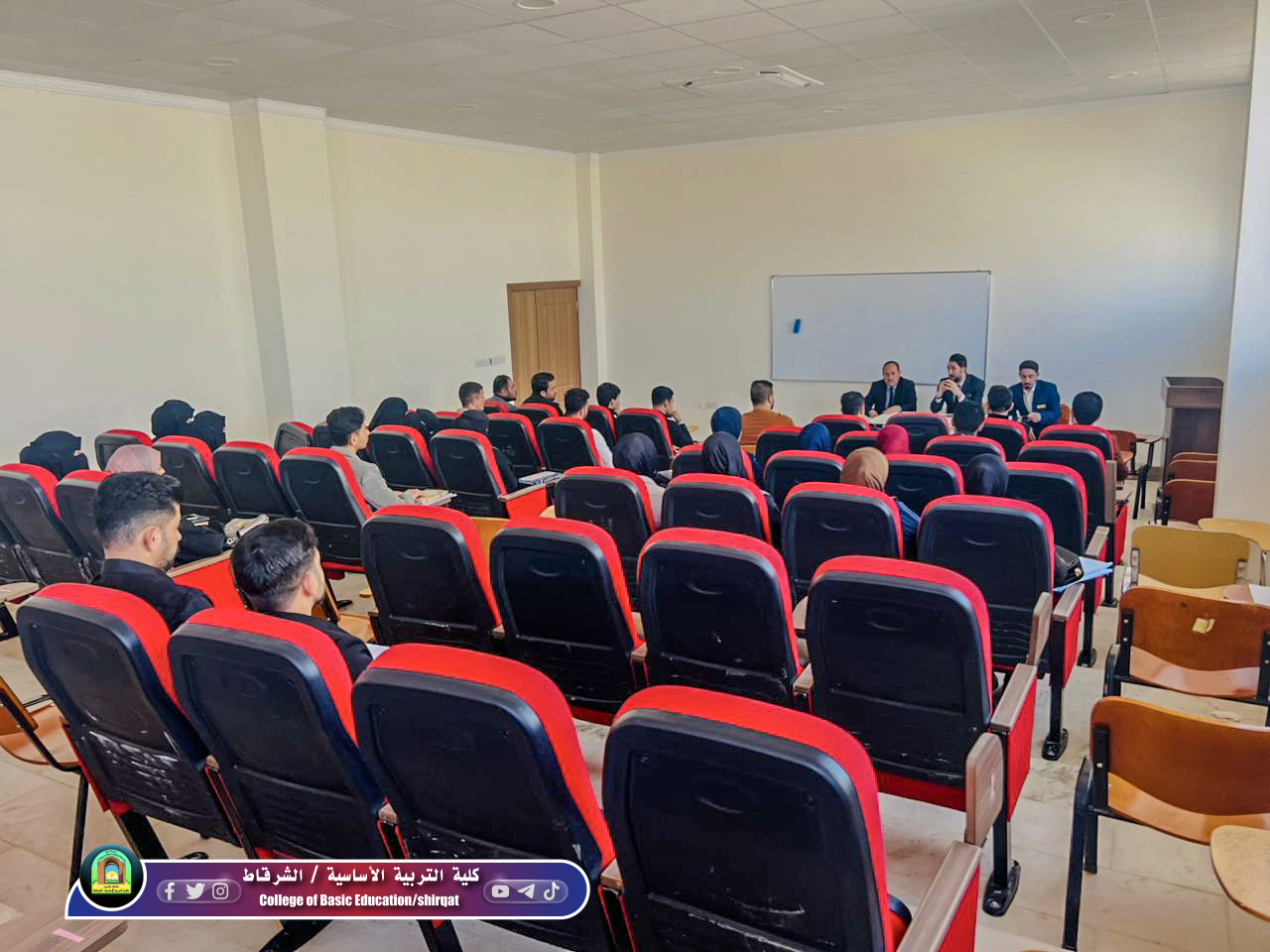 برعاية الأستاذ الدكتور وعد محمود رؤوف رئيس جامعة تكريت وبإشراف الأستاذ الدكتور حسين عبد إسماعيل عميد الكلية وفي إطار تعزيز الوعي المجتمعي ونشر ثقافة الاعتدال، أقامت وحدة الارشاد النفسي والتوجيه التربوي في كلية التربية الأساسية / الشرقاط وبالتعاون مع مركز التعليم المستمر ندوة علمية بعنوان ((التطرف العنيف في البيئة الجامعية – الأسباب والعلاج)) اليوم الاحد الموافق 15/2/2026 وبحضور عدد من تدريسييي وطلبة الكلية وقد حاضر في الندوة كل من.