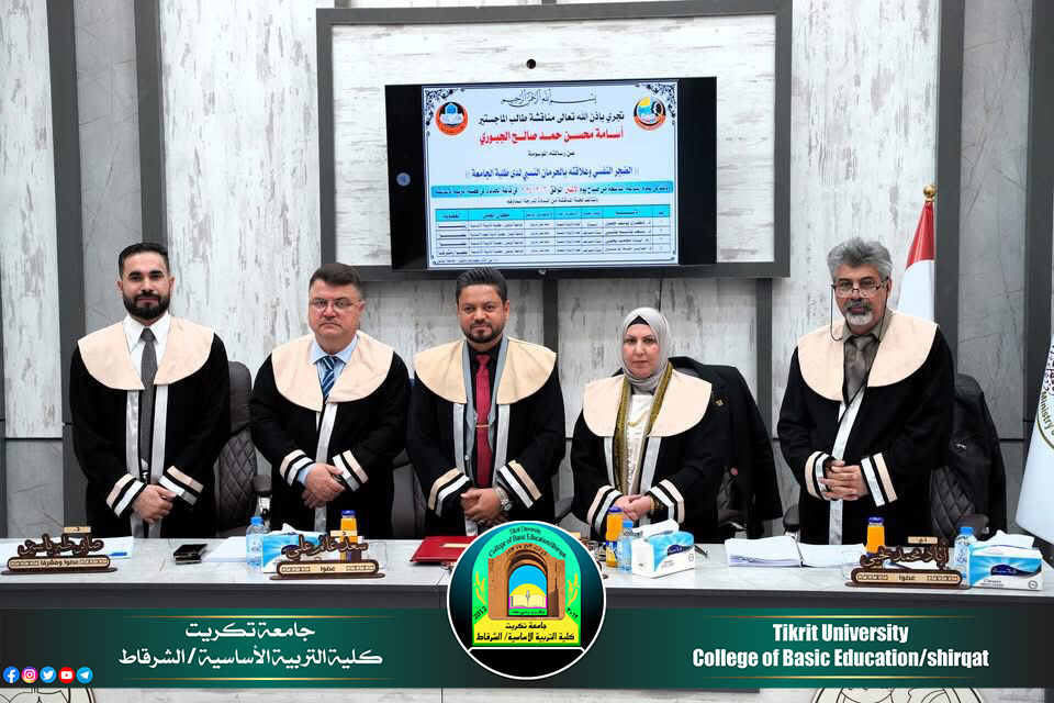 شارك الاستاذ المساعد الدكتور (صابر طه ياسين) التدريسي على ملاك كليتنا بعضوية لجنة مناقشة رسالة ماجستير المقامة في كلية التربية الاساسية/ جامعة الموصل للطالب ((اسامه محسن حمد)) والموسومة بـ ((الضجر النفسي وعلاقته بالحرمان النسبي لدى طلبة الجامعة)) يوم الاثنين الموافق 2024/12/16، وقررت اللجنة قبول رسالة الطالب ومنحه شهادة الماجستير في تخصصه الدقيق ، متمنين له دوام الموفقية والمزيد من العطاء والابداع العلمي المتواصل والمستمر خدمة للمسيرة التعليمية.