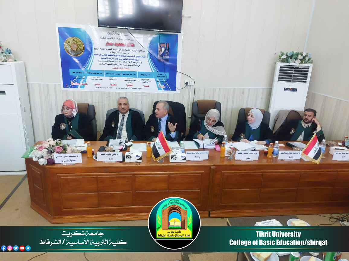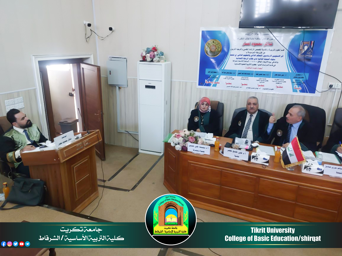 شارك الأستاذ الدكتور (علي عليج خضر) التدريسي على ملاك كليتنا بعضوية لجنة مناقشة اطروحة الدكتوراه في كلية التربية للعلوم الإنسانية/ جامعة ديالى للطالب شاكر محمود نصار الموسومة بـ ((اثر الاسلوبين الإرشاديين التحكم الذاتي والتقويم الذاتي في تنمية سلوك الحماية الذاتية لدى طلاب المرحلة الإعدادية)) يوم الاربعاء الموافق 2024/9/18، وقررت اللجنة قبول اطروحة الطالب ومنحه شهادة الدكتوراه في تخصصه الدقيق وبتقدير جيد جداً، متمنين له دوام الموفقية والمزيد من العطاء والابداع العلمي المتواصل والمستمر خدمة للمسيرة التعليمية.