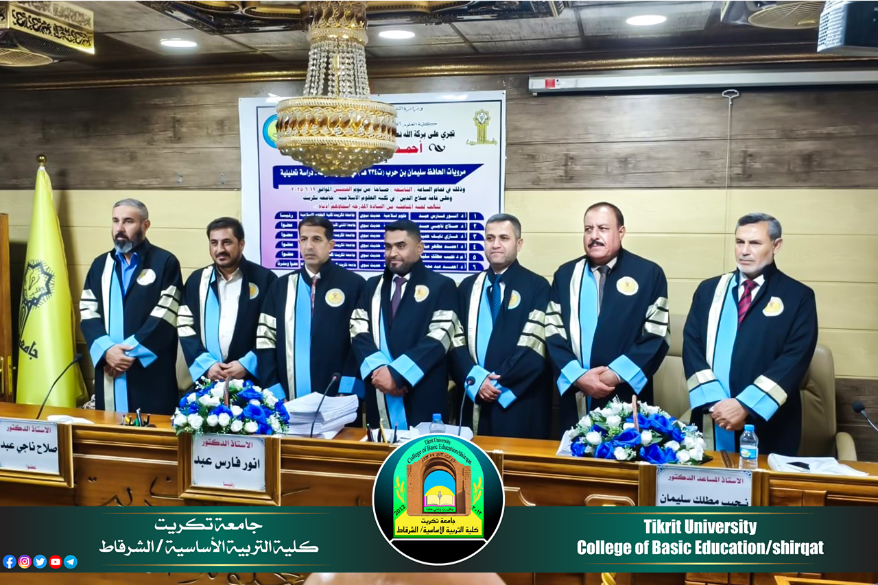 تتقدم اسرة كلية التربية الاساسية/ الشرقاط بأطيب التهاني والتبريكات للمدرس المساعد (احمد صالح مريس) التدريسي على ملاك كليتنا بمناسبة حصوله على شهادة الدكتوراه بعد مناقشة اطروحته الموسومة بـ (مرويات الحافظ سليمان بت خرب (ت 224 هـ) في السنن الاربعة- دراسة تحليلة)، من جامعة تكريت/ كلية التربية للعلوم الاسلامية/ قسم الحديث وعلومه.. سائلين المولى عز وجل التوفيق له في مسيرته الاكاديمية والعلمية.