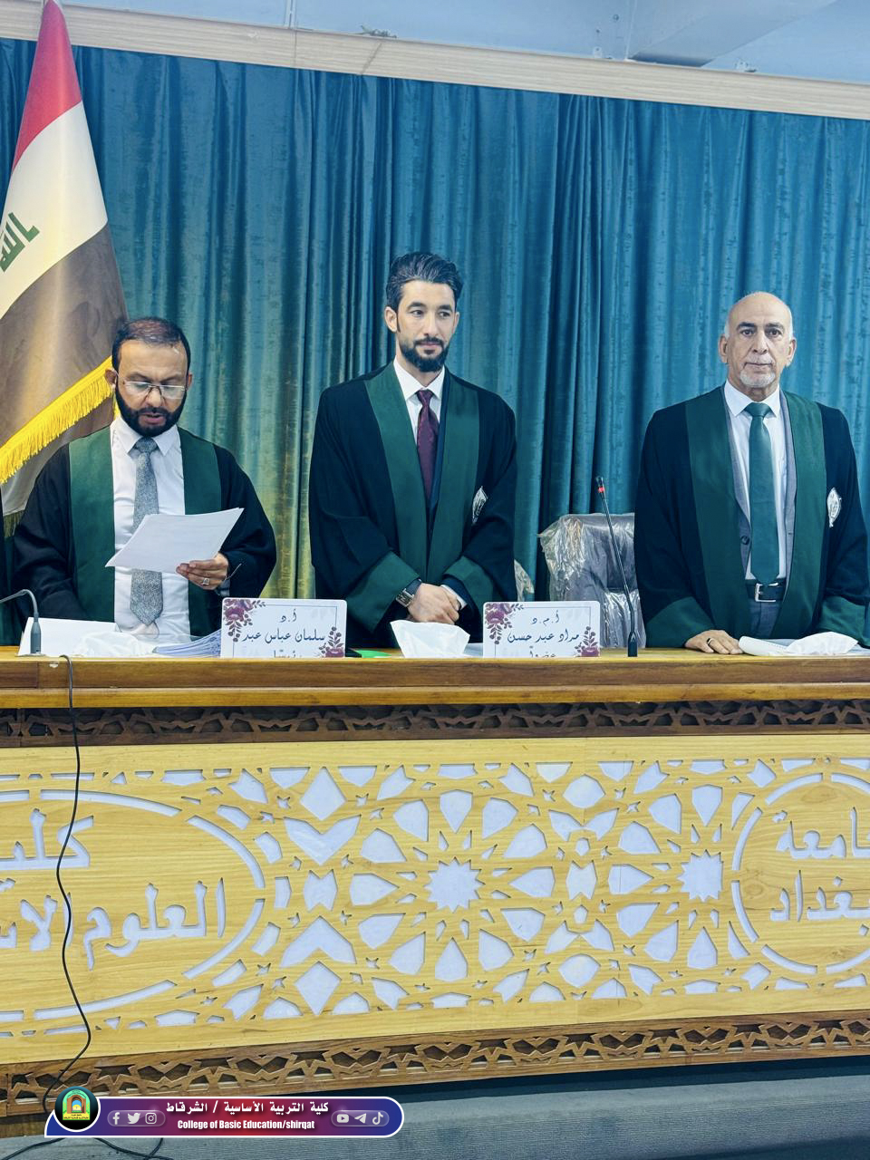 شارك الأستاذ المساعد الدكتور مراد عبد حسن أحد تدريسي قسم اللغة العربية في عضوية لجنة مناقشة أطروحة دكتوراه للطالبة (آثار عمر عادل) في رحاب جامعة بغداد / كلية العلوم الإسلامية / قسم اللغة العربية اليوم الاحد الموافق 1/3/2026 عن اطروحتها الموسومة: (الدكتور عبد الله جاد الكريم وجهوده النحوية واللغوية) وبناءً على ما دار في أروقة المناقشة من طروحات علمية رصينة استقرت اللجنة على إجازة الاطروحة ومنح الطالبة الشهادة العلمية بعد إتمام الملاحظات المقترحة. وتأتي مشاركة الدكتور في هذه اللجنة كترجمةٍ عملية لسياسة التعاون المعرفي بين المؤسسات الجامعية وخطوةً لتعزيز العمل الأكاديمي المشترك مما يساهم في تبادل الرؤى البحثية ورفع كفاءة المخرجات العلمية بين الجامعات العراقية . سائلين المولى عز وجل له دوام التوفيق والسداد، ومزيداً من العطاء والرفعة في مسيرته العلمية والمهنية