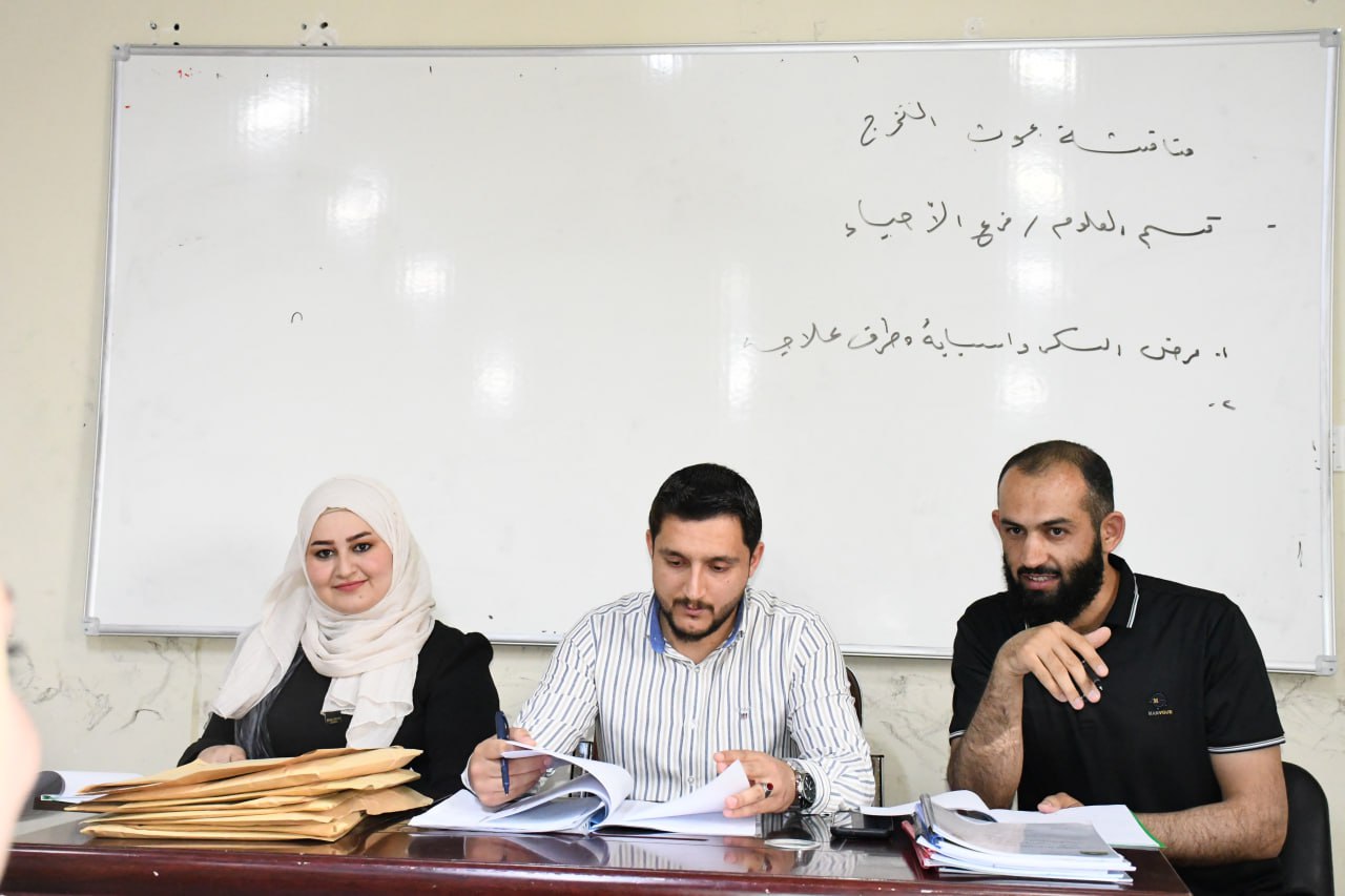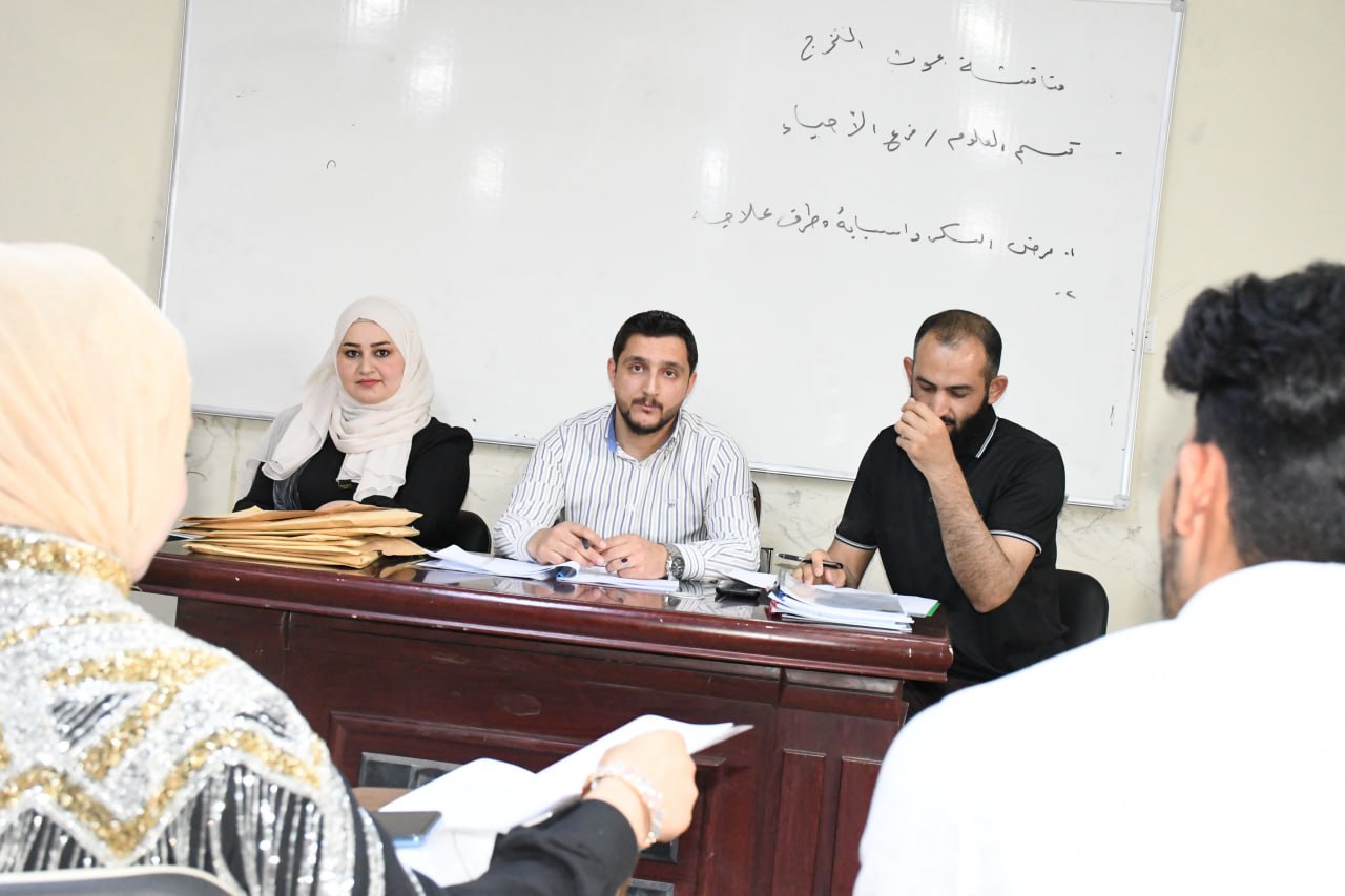 جرت هذا اليوم مناقشات بحوث الطلبة للمرحلة الرابعة لقسم العلوم في كليتنا من قبل اللجان العلمية المختصة لمناقشة كل طالب، وتمت المناقشات حسب الضوابط العلمية للبحوث المقدمة .