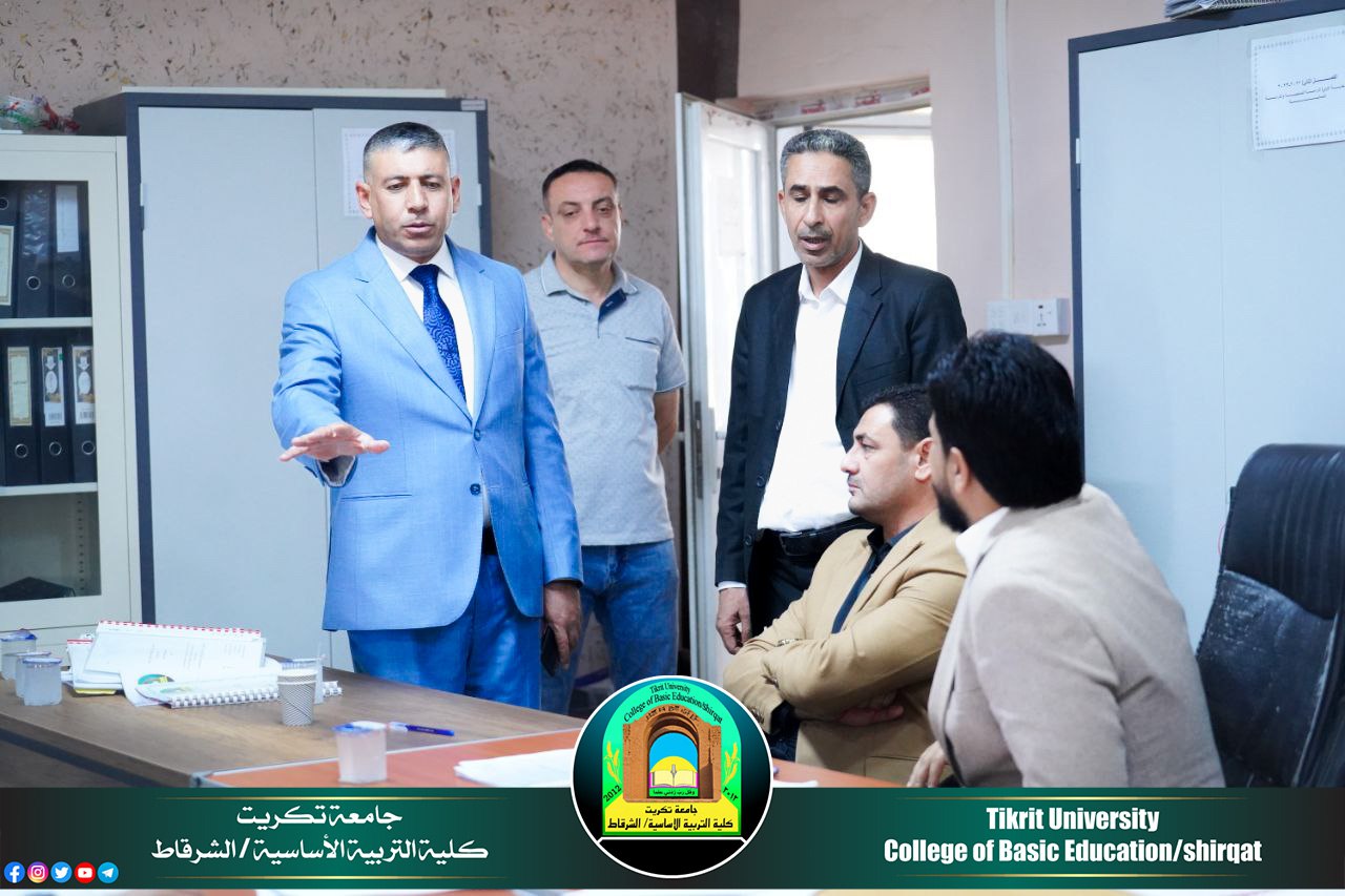 اجرى الاستاذ المساعد الدكتور حامد محمد صالح عميد كليتنا جولة تفقدية للاقسام العلمية في الكلية كافة للاطلاع على مناقشات بحوث التخرج لطلبة المرحلة الرابعة كافة