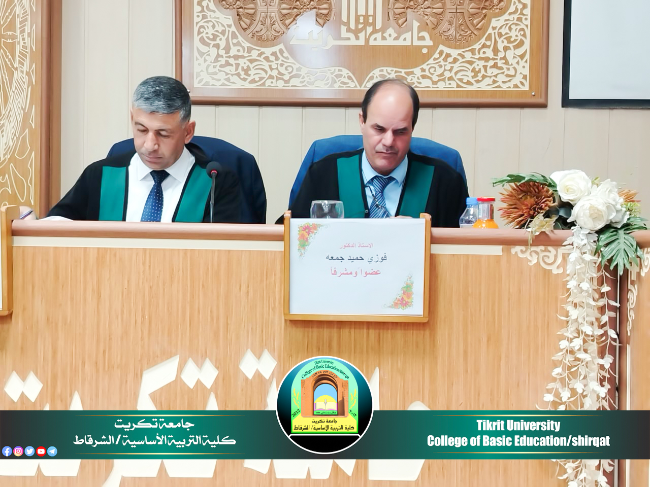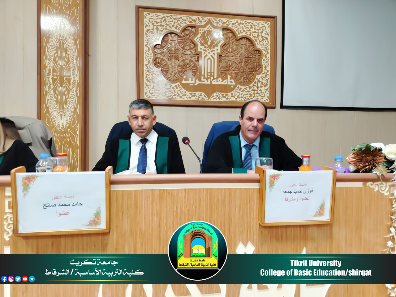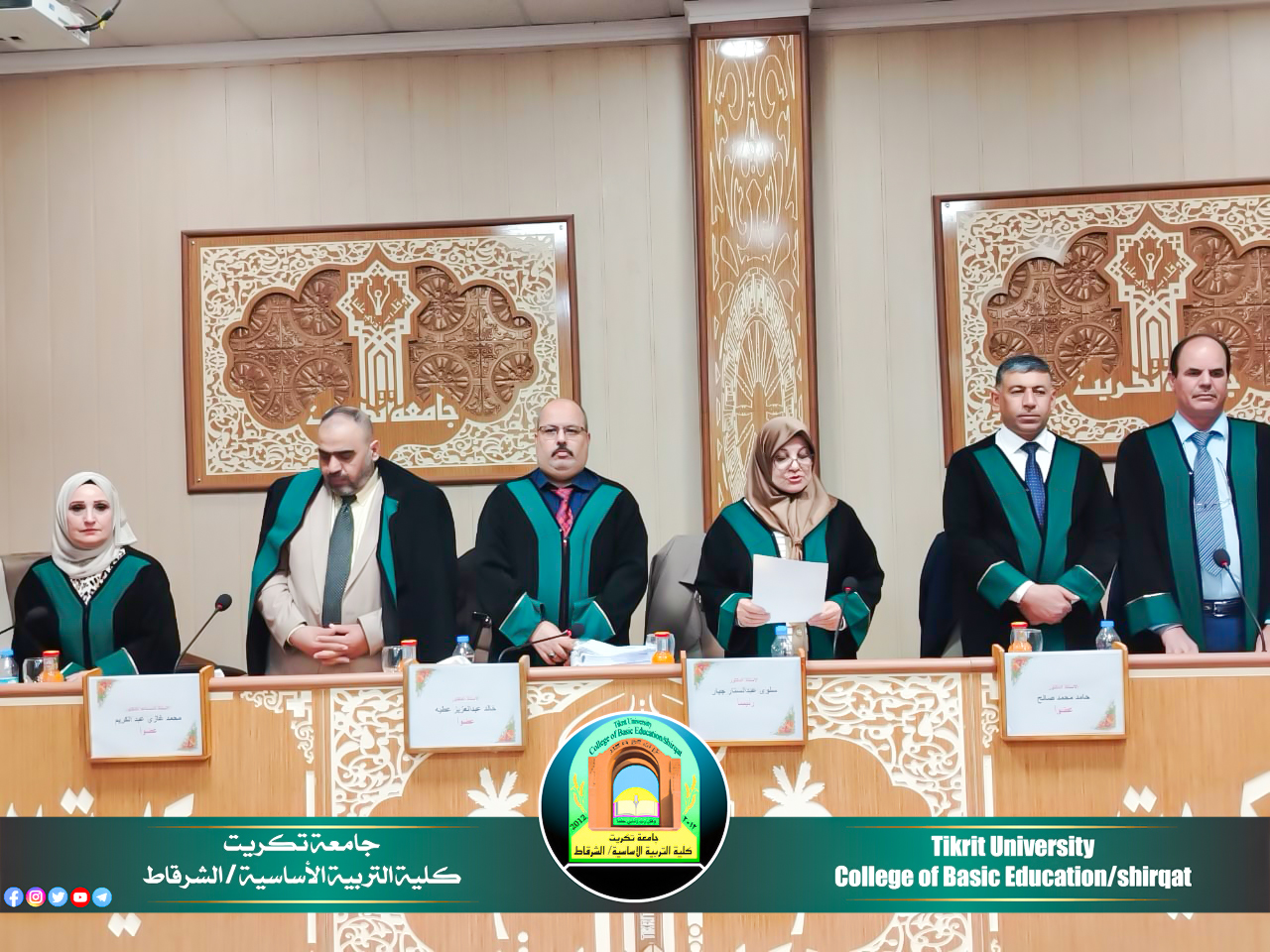 شارك الأستاذ الدكتور (حامد محمد صالح) عميد كليتنا بعضوية لجنة مناقشة أطروحة الدكتوراه في كلية التربية للبنات بجامعة تكريت للطالبة (شيماء سعود صبري) اختصاص (الكيمياء) عن اطروحتها الموسومة بـ ((تحضير وتشخيص بعض المركبات الحلقية غير المتجانسة (الخماسية- السباعية) المشتقة من تيرفثالات ثنائي الاثيل الثنائية و دراسة بعض تطبيقاتها)) يوم الخميس الموافق 2025/2/27، وقررت اللجنة قبول اطروحة الطالب ومنحها شهادة الدكتوراه في تخصصها الدقيق، متمنين لها دوام الموفقية والمزيد من العطاء والابداع العلمي المتواصل والمستمر خدمة للمسيرة التعليمية.