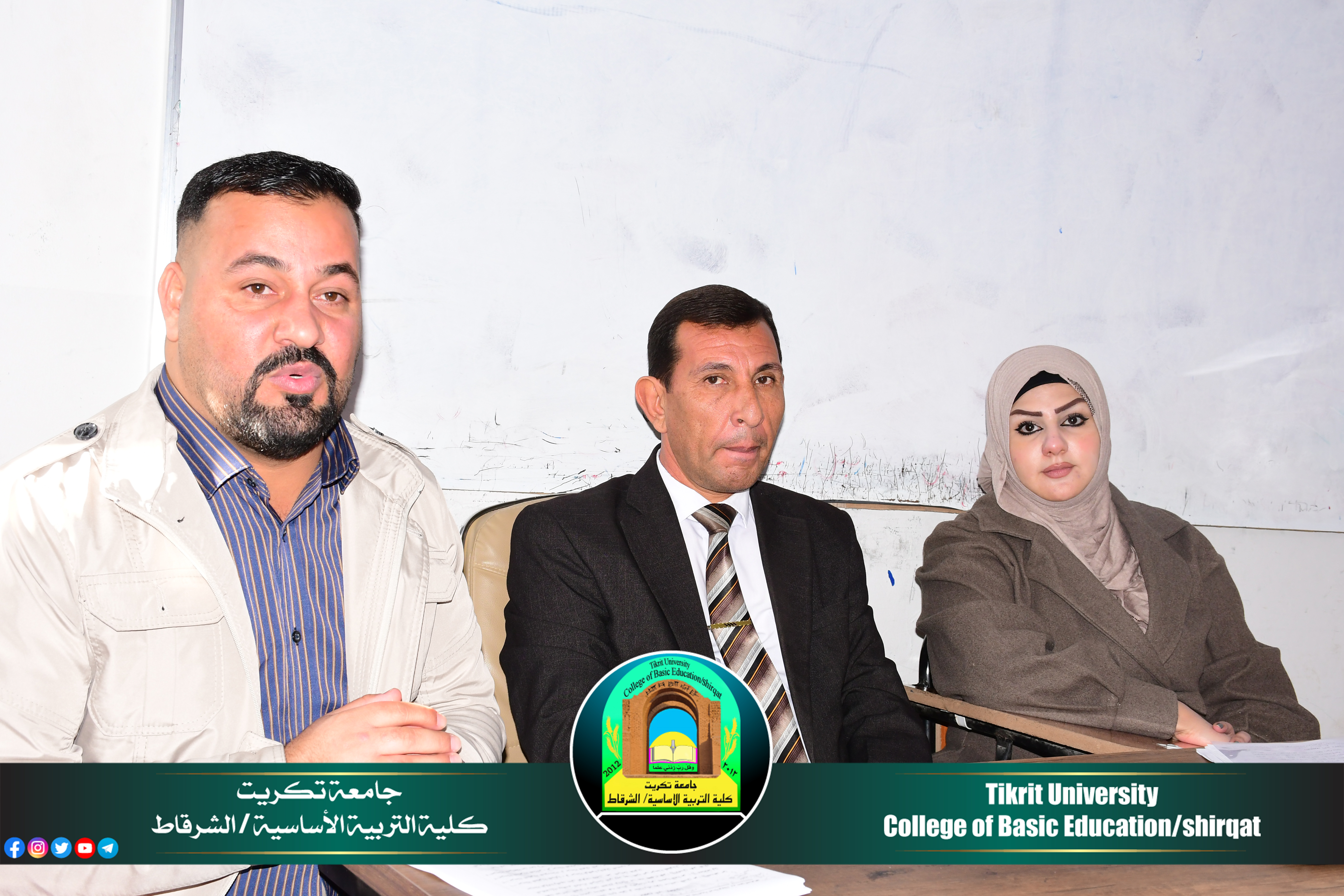 برعاية السيد رئيس جامعة تكريت الاستاذ الدكتور وعد محمود رؤوف المحترم وبإشراف كلٌ من الاستاذ المساعد الدكتور حامد محمد صالح عميد كلية التربية الاساسية/ الشرقاط المحترم والاستاذ المساعد الدكتور سياف عبد حسين مدير مركز التعليم المستمر في جامعة تكريت المحترم, يقيم مركز التعليم المستمر بالتعاون مع كلية التربية الاساسية/ الشرقاط ندوة بعنوان (ادب الاطفال، ودوره في صياغة المفاهيم والافكار لدى طلاب المرحلة الابتدائية) يوم الاحد الموافق 2024/12/1 وتمت مناقشة محاور الندوة من قبل كلٌ من الاستاذ المساعد الدكتور جابر حسن هرم والمدرس المساعد احمد عبد علي والمدرس المساعد دعاء محمد رجب التدريسيين على ملاك كليتنا.