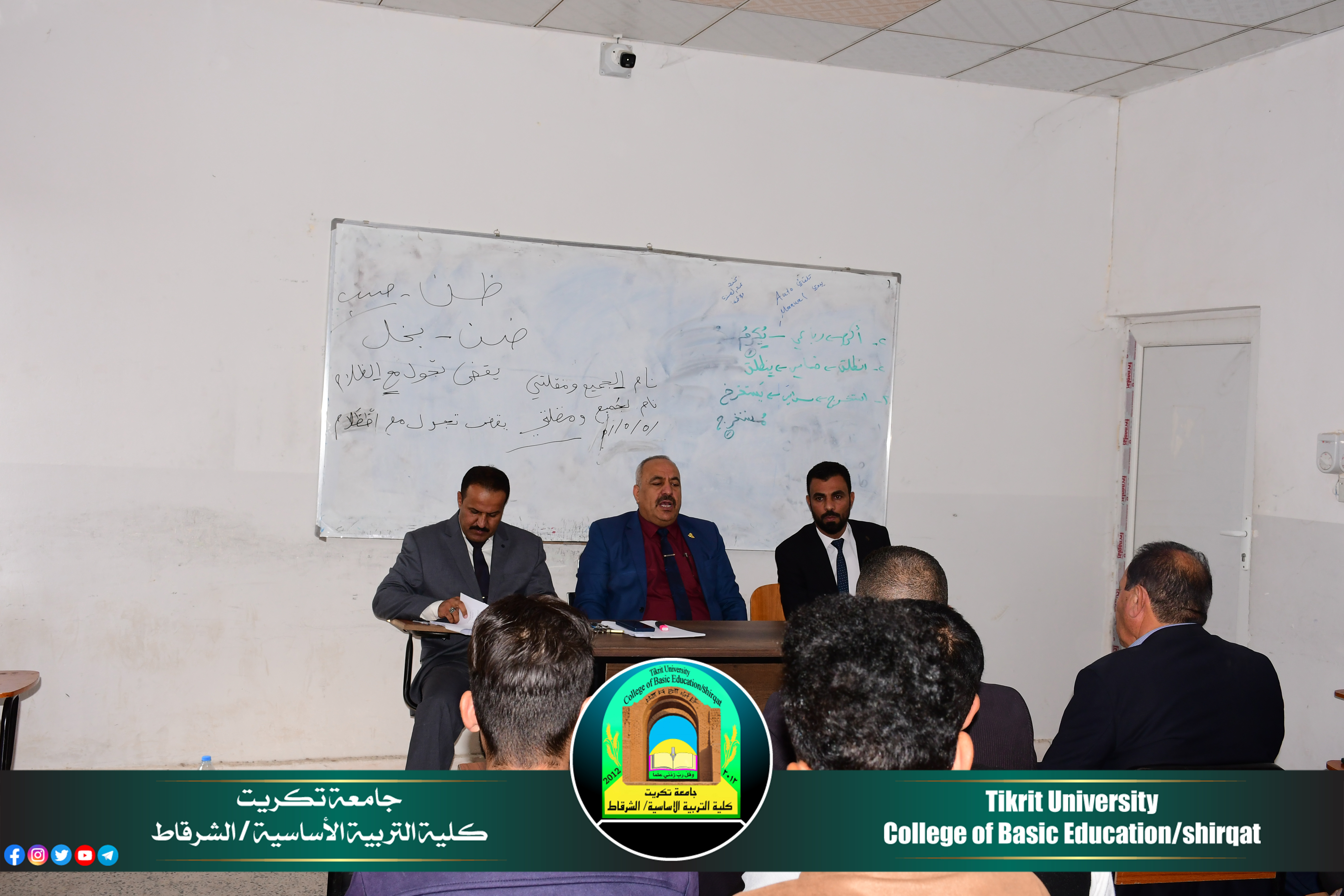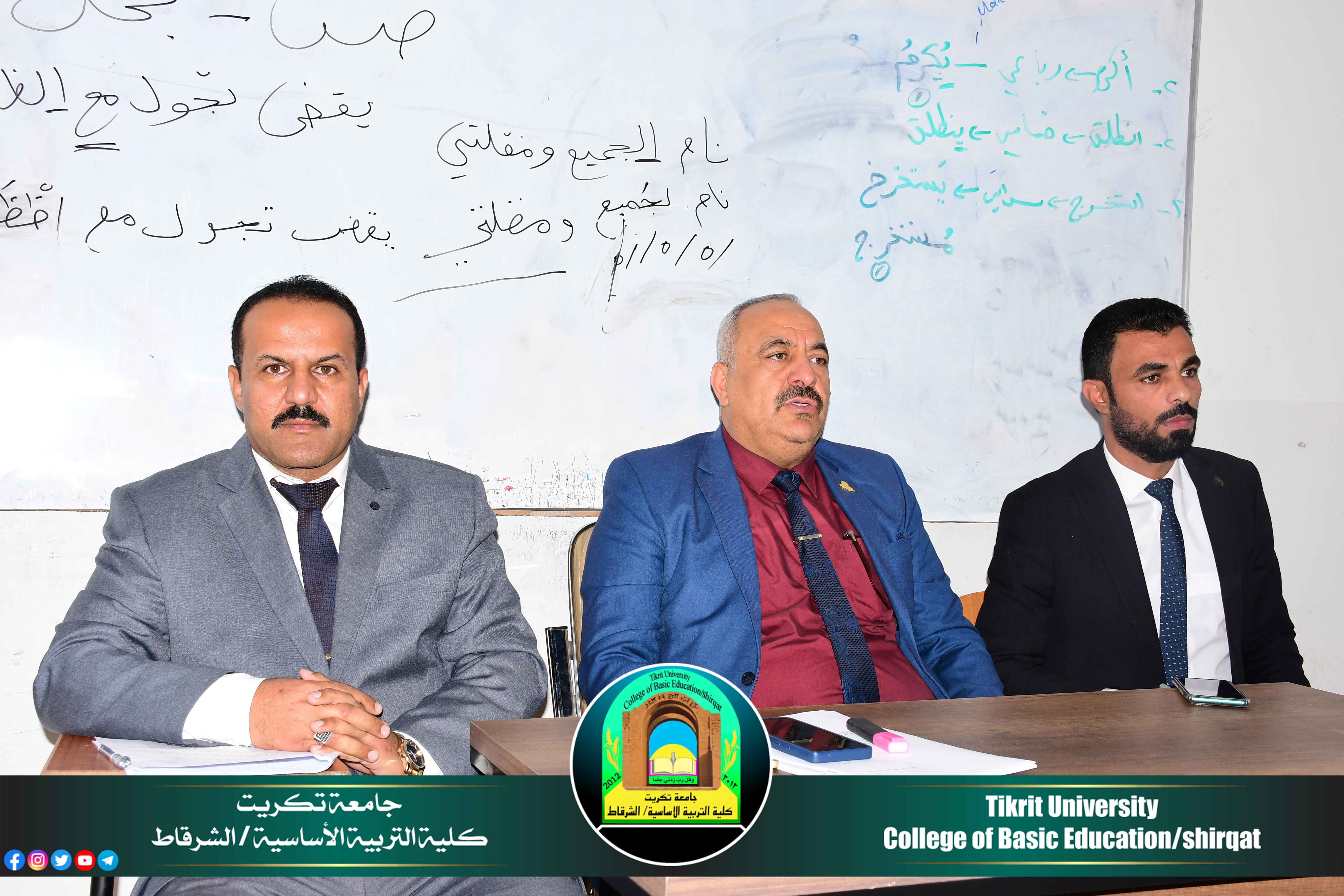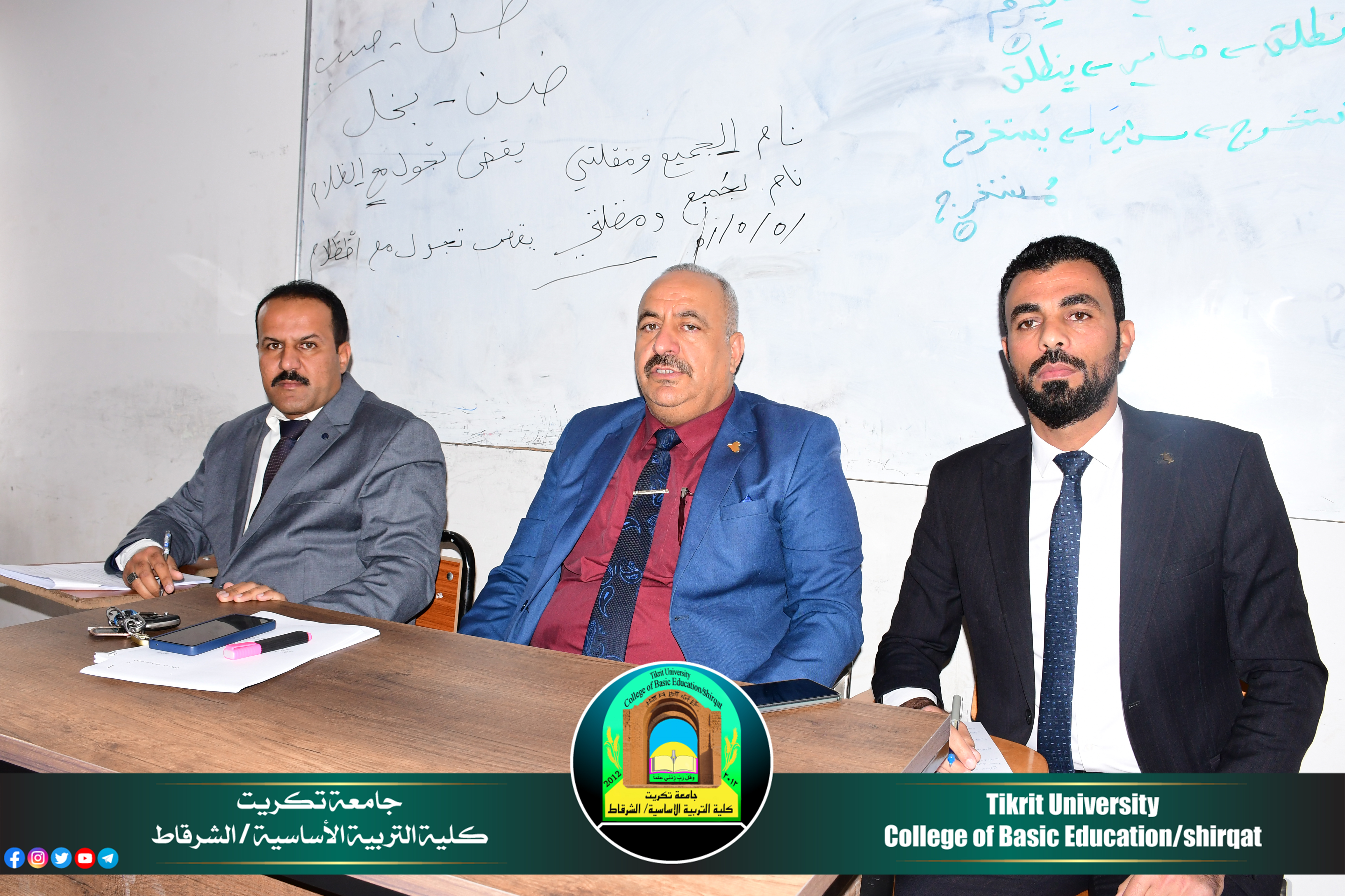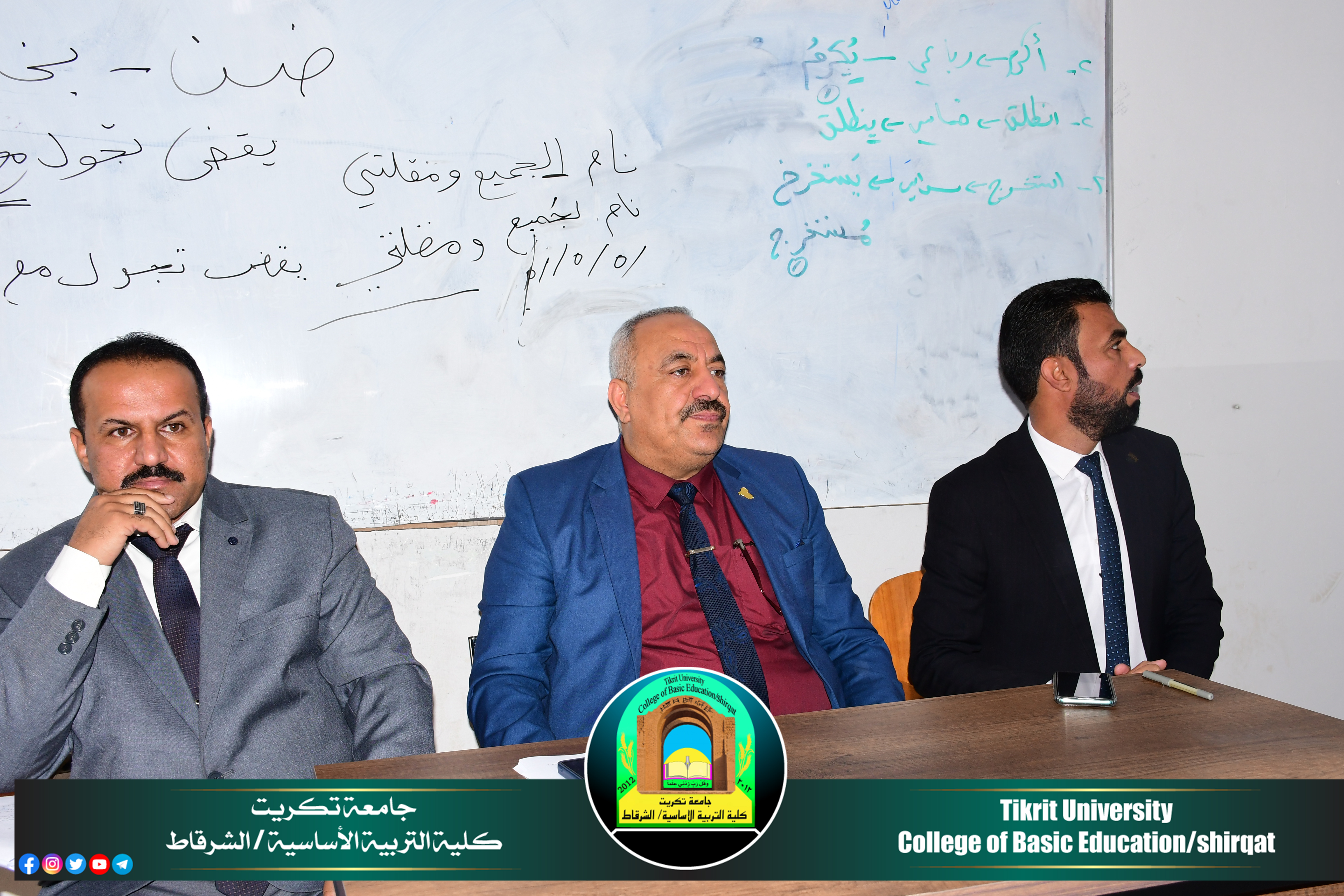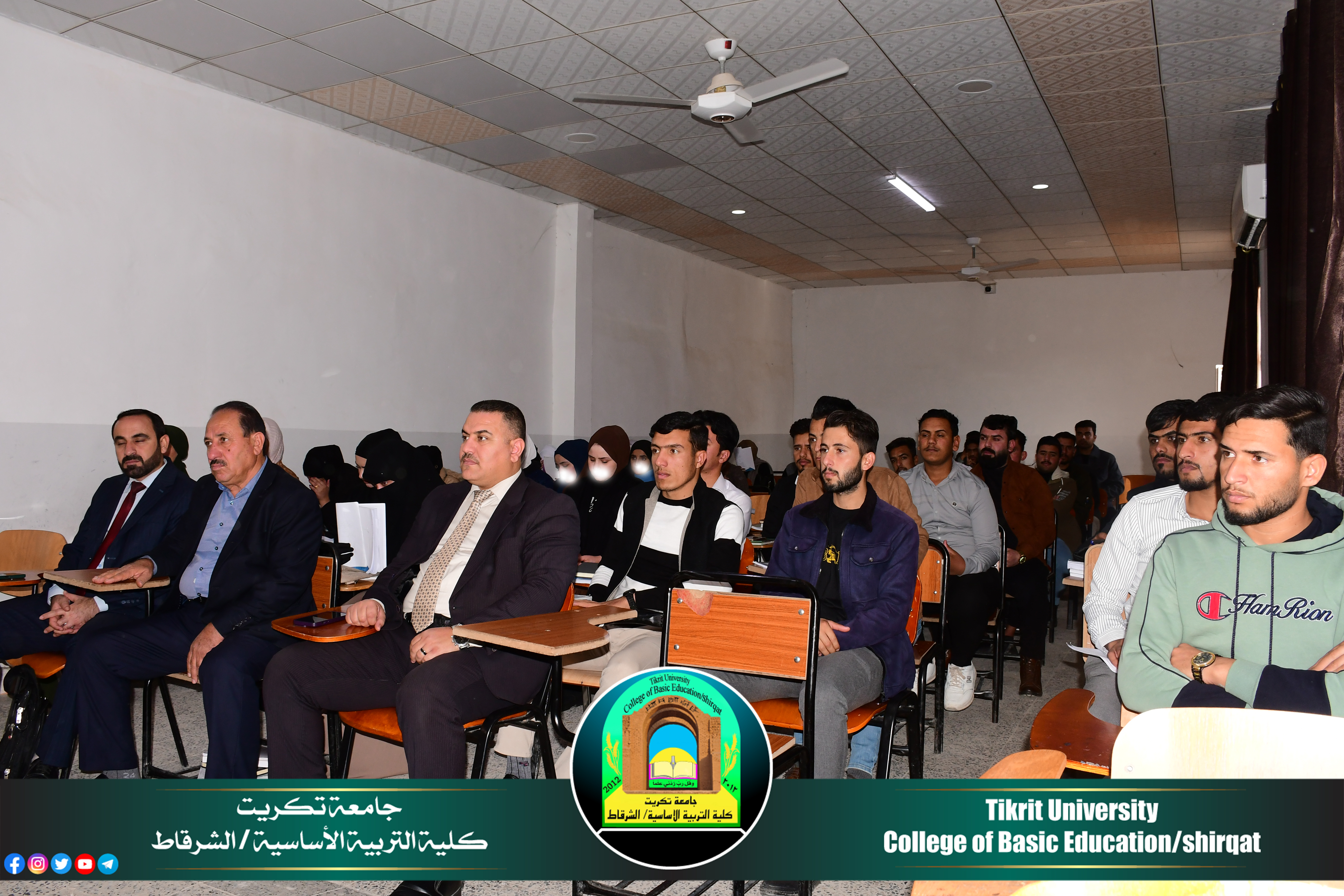 اقامت كلية التربية الاساسية/ الشرقاط بالتعاون مع مركز التعليم المستمر بجامعة تكريت ندوة علمية بعنوان (المساجلات في شعر عصر صدر الاسلام ودورها في تأسيس فن النقائض) يوم الثلاثاء الموافق 2024/11/12