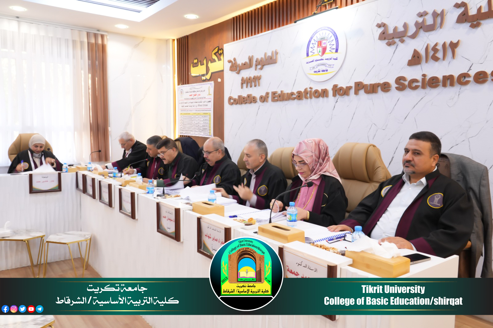 شارك الأستاذ المساعد الدكتور (حامد محمد صالح) عميد كليتنا  بعضوية لجنة مناقشة اطروحة دكتوراه في كلية التربية للعلوم الصرفة/ بجامعة تكريت للطالبة (بدور خضير حمد)  الموسومة ((تحضير واختبار انتقائية مشتقات جديدة من اوكسيد الكرافين لـ wheat straw في ازالة ايونات العناصر الثقيلة)) يوم الخميس الموافق 2024/10/17 ، وقررت اللجنة قبول اطروحة الطالبة ومنحها شهادة الدكتوراه ، متمنين لها دوام الموفقية والمزيد من العطاء والابداع العلمي المتواصل والمستمر خدمة للمسيرة التعليمية.