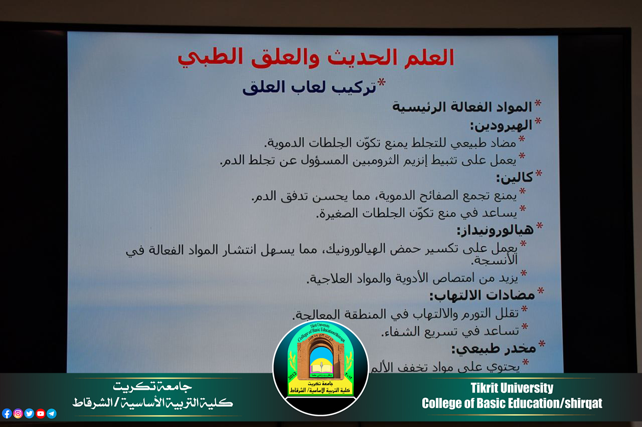 كلية التربية الاساسية/ الشرقاط تقيّم ندوة علمية حضورية حول (العلق الطبي ودورة في الطب البديل)