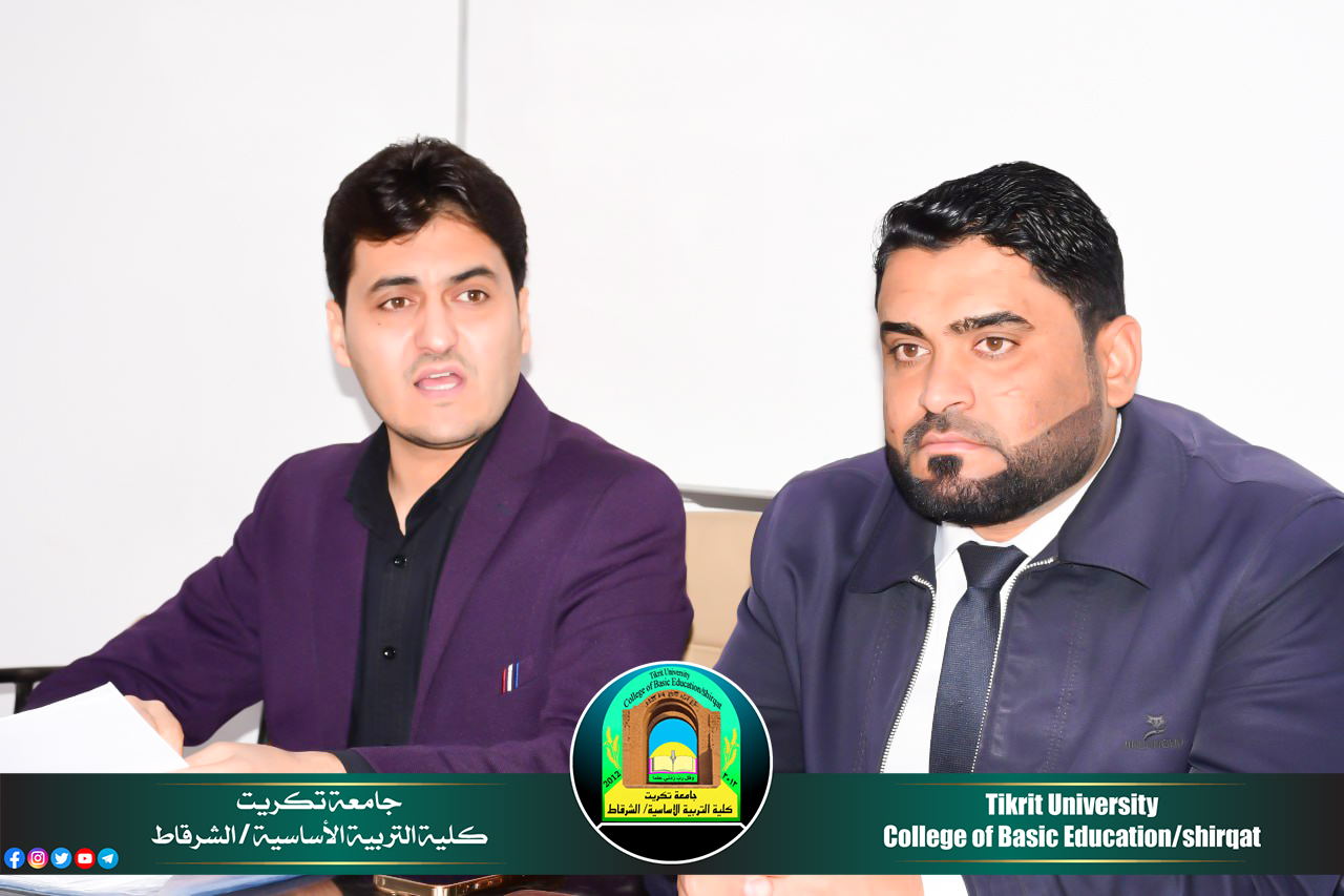 برعاية السيد رئيس جامعة تكريت الاستاذ الدكتور وعد محمود رؤوف المحترم وبإشراف كل من الاستاذ المساعد الدكتور حامد محمد صالح عميد كلية التربية الاساسية/ الشرقاط المحترم والاستاذ المساعد الدكتور سياف عبد حسين مدير مركز التعليم المستمر في جامعة تكريت المحترم, يقيم مركز التعليم المستمر بالتعاون مع كلية التربية الاساسية/ الشرقاط دورة بعنوان (الأسس العلمية في نقد المرويات حديثيا وتاريخيا) ليوم الاحد والاثنين الموافقين 8-2024/12/9 وتمت مناقشة محاور الدورة من قبل كلُ من المدرس الدكتور غسان محمد حسن والمدرس الدكتور سمية جاسم محمد و المدرس المساعد احمد صالح مريس التدريسيين على ملاك كليتنا.